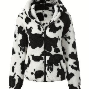 This product has multiple variants. The options may be chosen on the product pageWomen's Coats & JacketsWomen’s Casual Waffle Knit Hooded Jacket with Cute Cat Paw Print, Zipper Closure and Drawstring – Machine Washable Polyester, Geometric Pattern