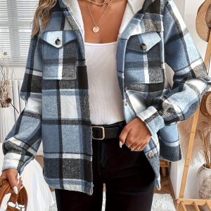 This product has multiple variants. The options may be chosen on the product pageWomen's Coats & JacketsWomen’s Casual Plaid Hooded Jacket with Fleece Lining – All-Season Warmth, Blue Black Beige White Brown Checkered Coat, Button Front Closure & Pockets, 100% Polyester Outerwear for Everyday & Formal Outfits, Relaxed Fit with Plaid Design, Dry Clean Only, Stylish Fleece-Lined Jacket for Women, Coats And Jackets for Women, Jackets for Women, Ladies Coats And Jackets, Long Coats for Women Winter, Lightweight Jacket for Women