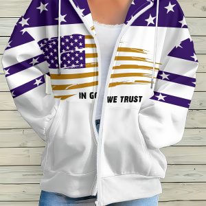 This product has multiple variants. The options may be chosen on the product pageWomen's Coats & JacketsWomen’s Full-Zip American Flag Hooded Sweatshirt – Red, White & Blue Patriotic Full-Zip Hoodie with Front Zipper Closure, Loose-Fit Long Sleeve Winter Warmth, Machine Washable Casual Pullover for 4th of July, Casual Attire & Layering (Star & Stripe Design, Full-Body Print, Relaxed Fit, Cozy Hood, Autumnu002FWinter Clothing, Patriotic Style, Front Zipper Detail, Versatile for Casual Outings)