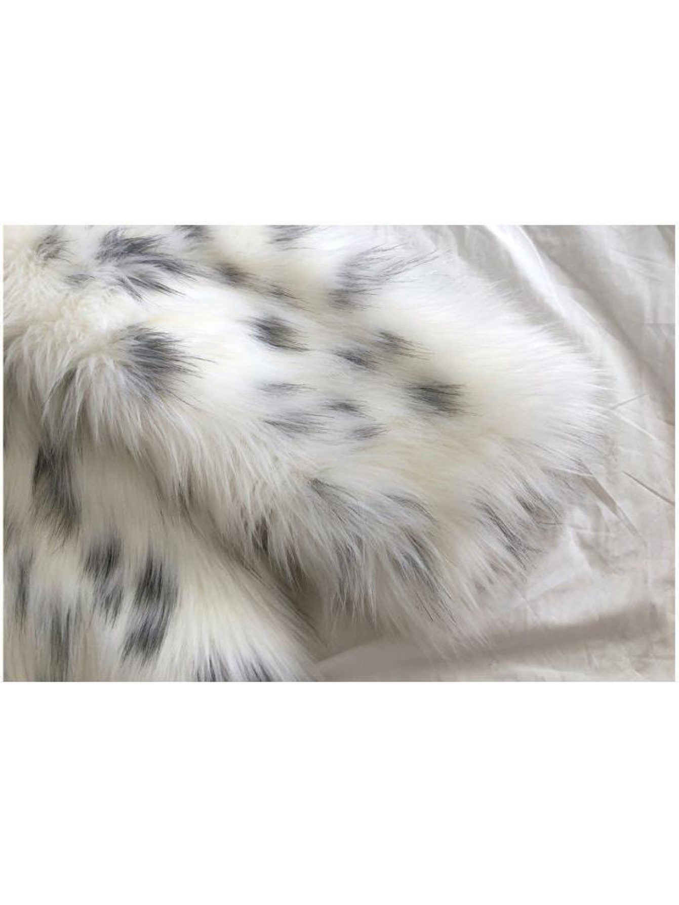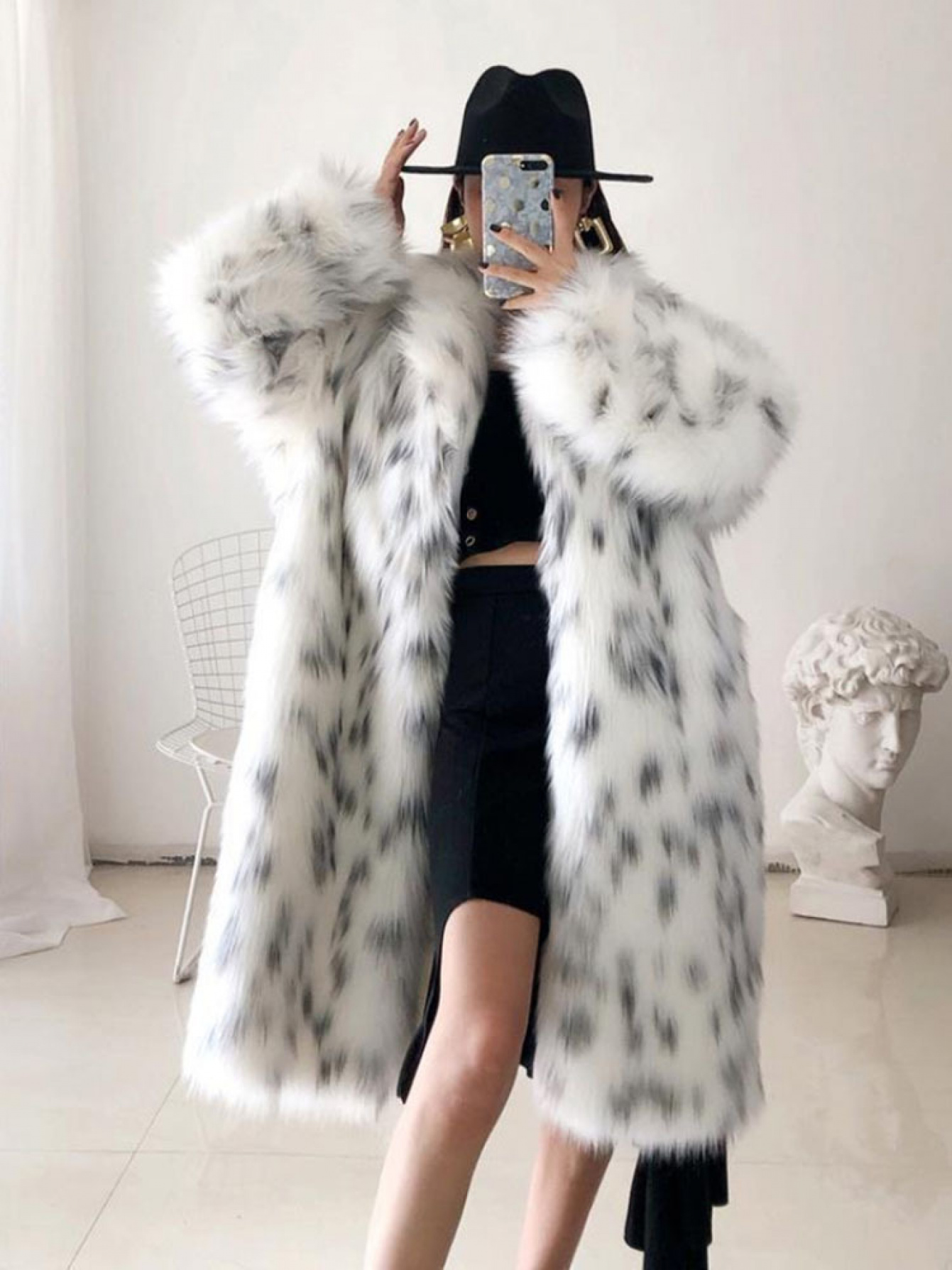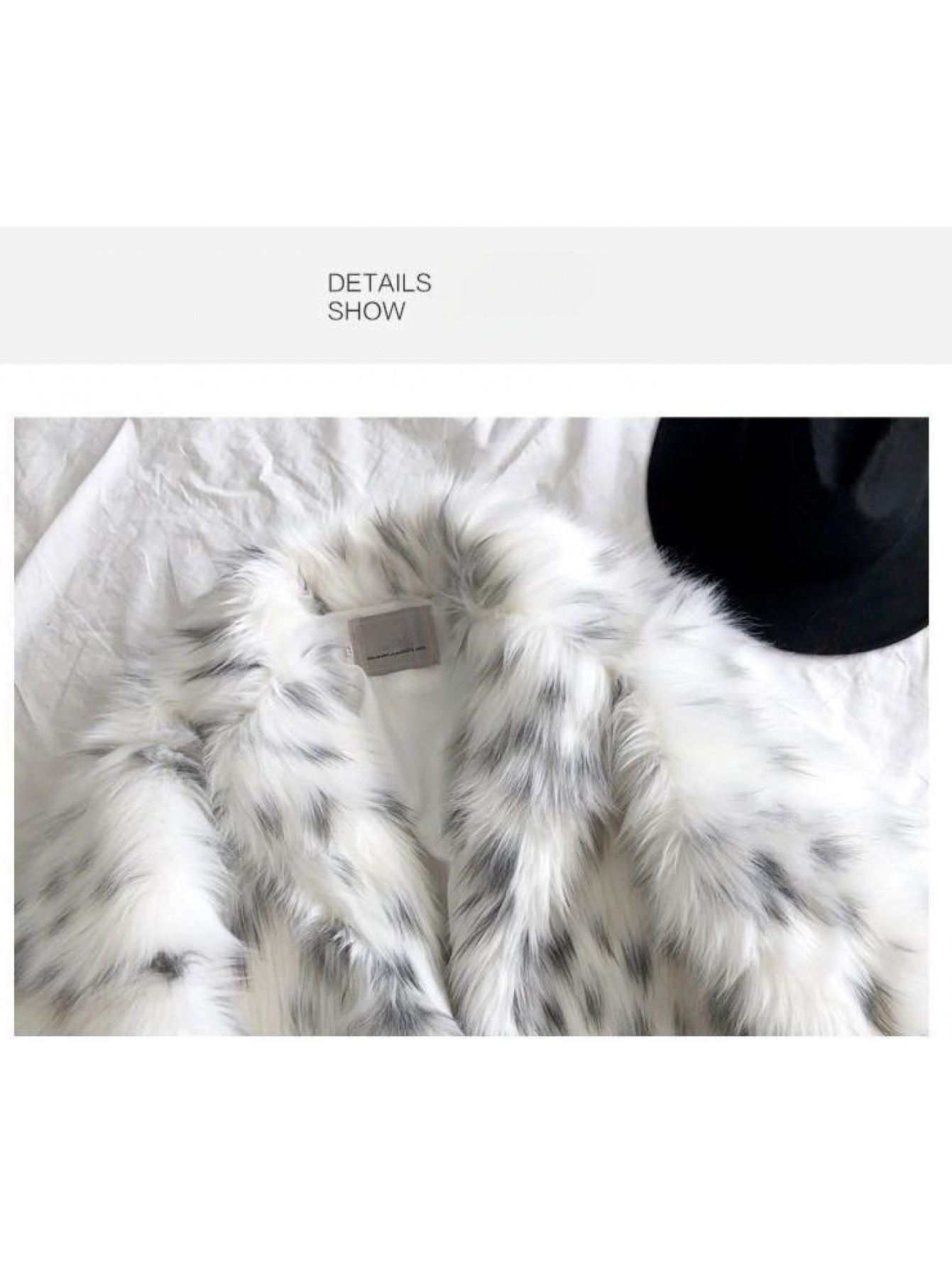 - Black And White Leopard Print Women’s Faux Fur Coat with Fashionable Long Collar Fox Fur Jacket