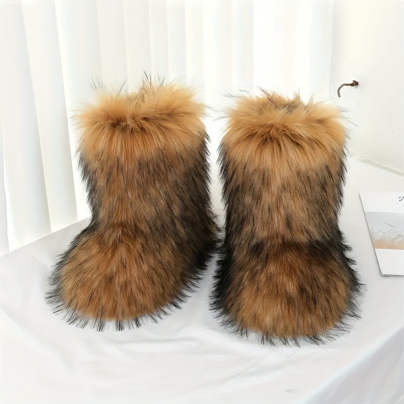 Comfortable And Stylish Women’S faux fur Snow Boots – Warm Slip-on Mid-calf Winter Boots, Flat-soled, Comfortable For Outdoor Use, Women’S faux fur Boots, Furry Boots, Special Price Women’S Boots, Fast Delivery From Local Warehous