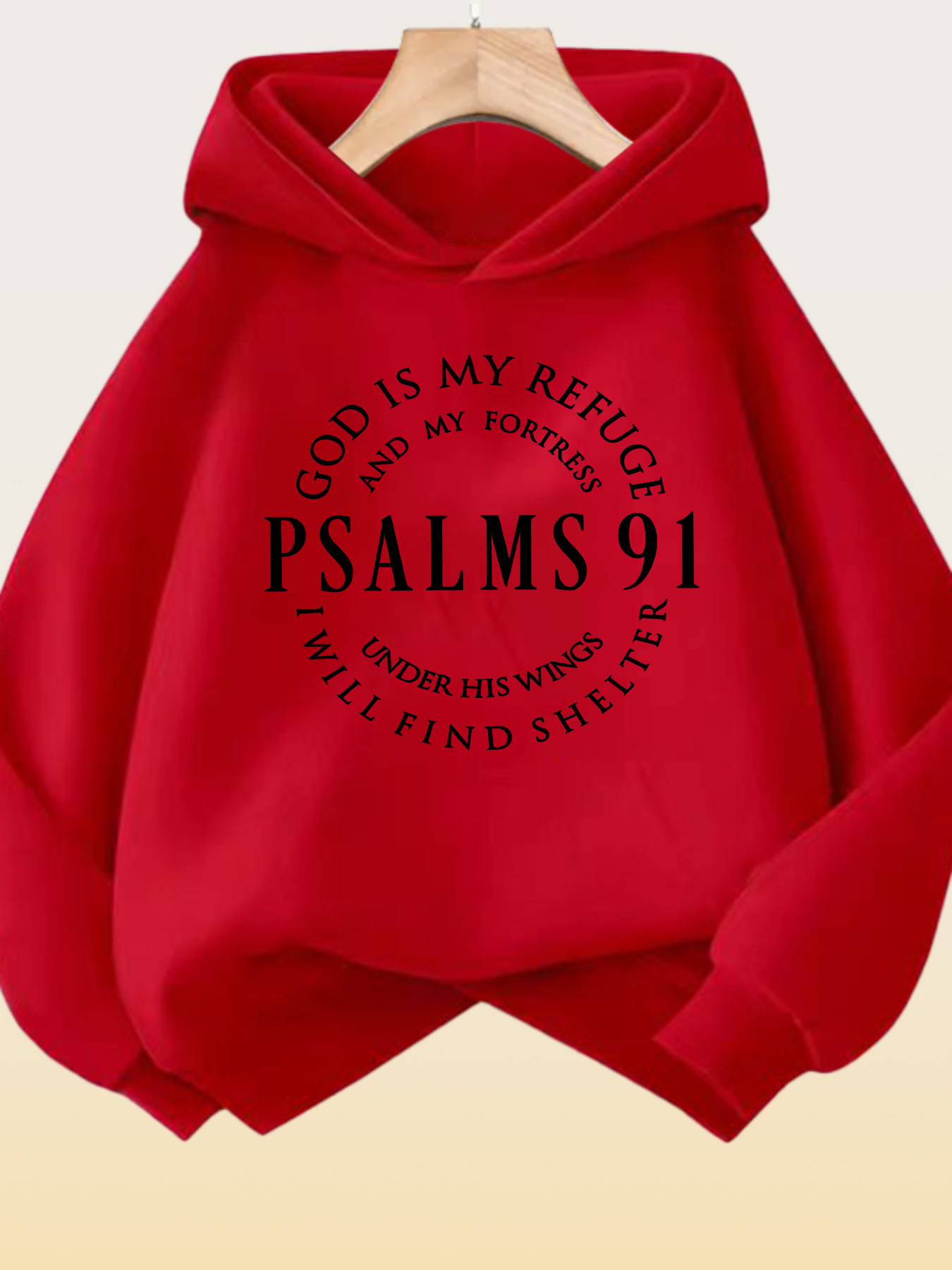 Cozy Christian Faith Hoodie 100% Polyester Cozy Women’s Pink Christian Faith Hooded Sweatshirt with Psalm 91 Bible Verse Print | Machine-Washable Pullover for Casual Wear | Inspirational Religious Apparel for Fallu002FWinter Layering