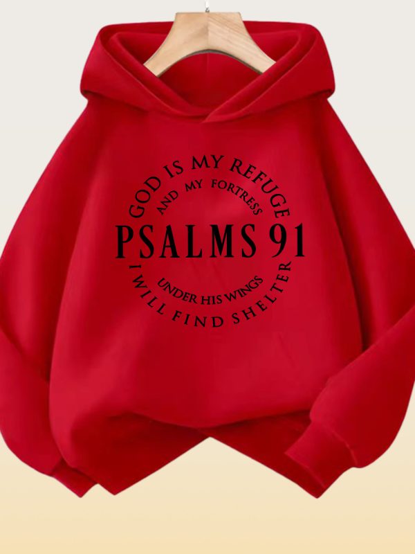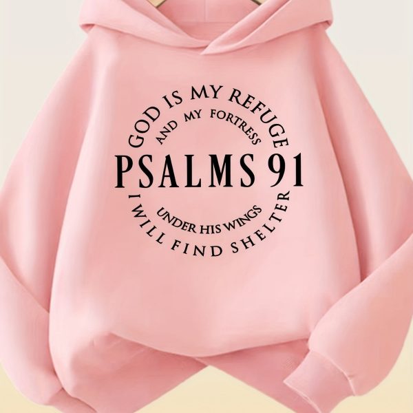 Cozy Christian Faith Hoodie 100% Polyester Cozy Women’s Pink Christian Faith Hooded Sweatshirt with Psalm 91 Bible Verse Print | Machine-Washable Pullover for Casual Wear | Inspirational Religious Apparel for Fallu002FWinter Layering