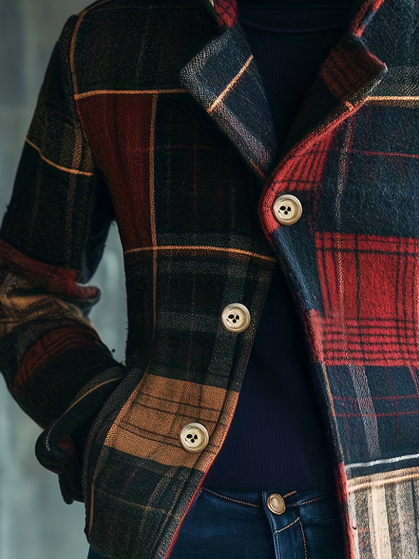 Be the first to review “Fashionable Women’S Autumn And Winter Plaid Elegant Retro Warm Stand Collar Splicing Button Jacket Small Suit Female Jacket” Cancel reply