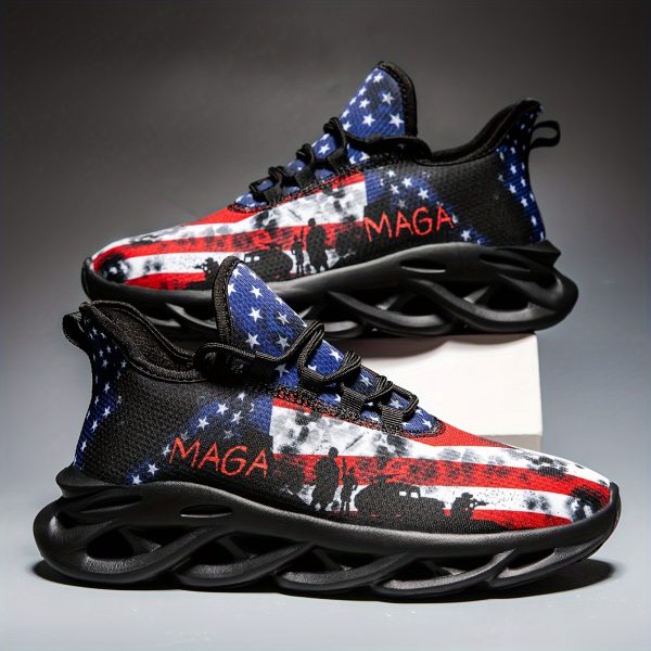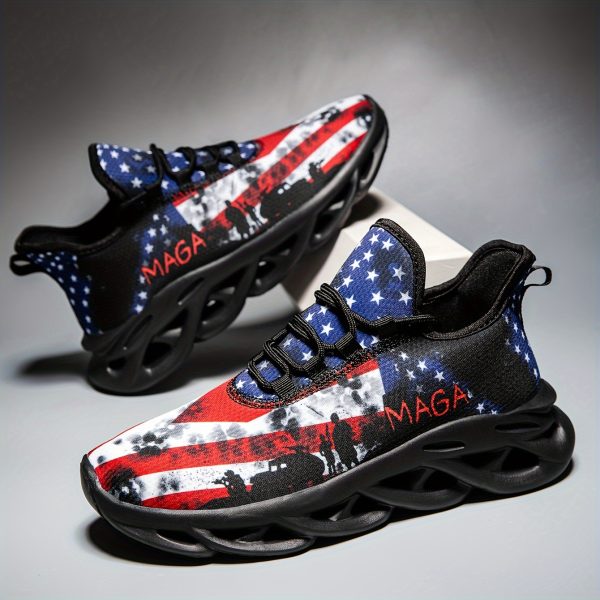 Independence Day 2024 New Print Lightweight Shock Absorption Tough and Breathable Running Shoes for Men – Soft Sole Mesh Fabric
