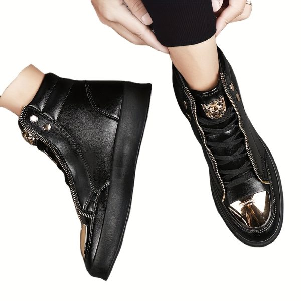 - Men’S 2025 Spring Fashion Boots – High-Top Casual Shoes With Metal Details