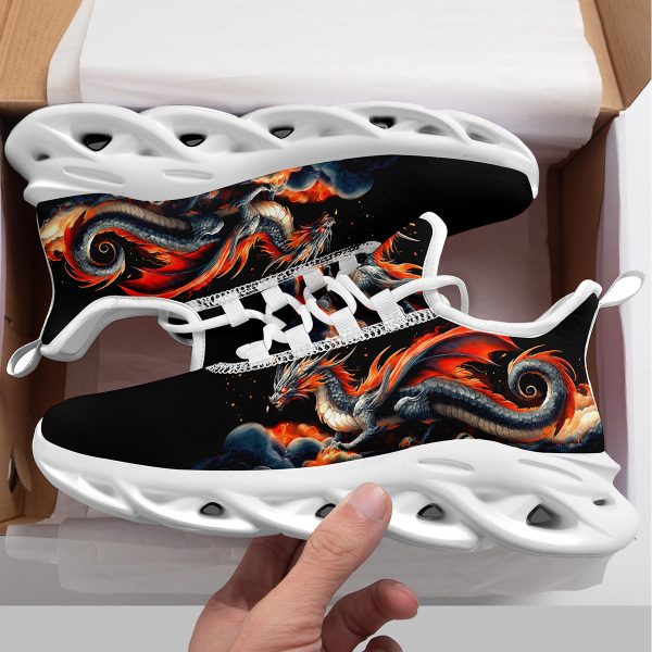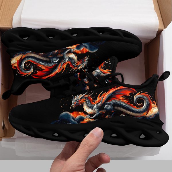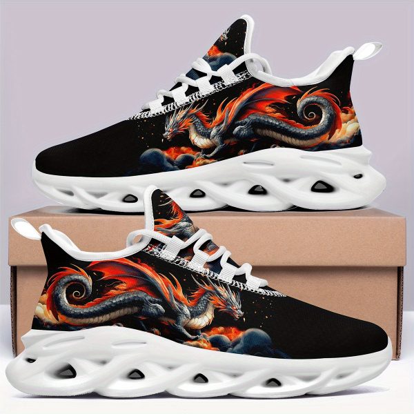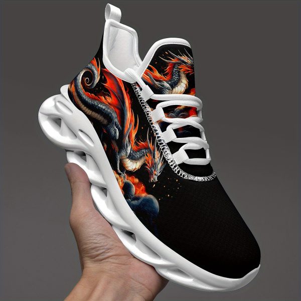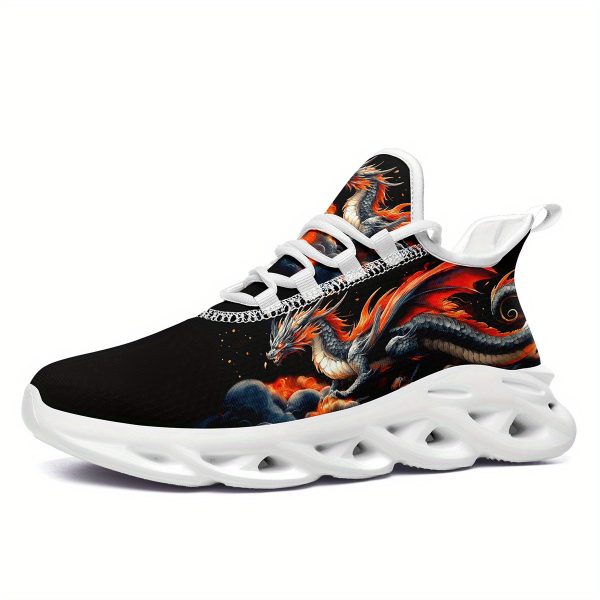 Men’S Gothic Dragon Design Low-Top Sneakers – Black & Orange Streetwear Lace-Up Shoes, Breathable Fabric Upper, Cushioned EVA Sole, Comfortable Walking Trainers for All Seasons, Casual Fashion Footwear, Dragon Sneakers, Allseason Footwear, Dynamic Graphic Design, Fabric Upper Shoes