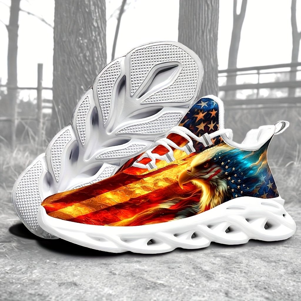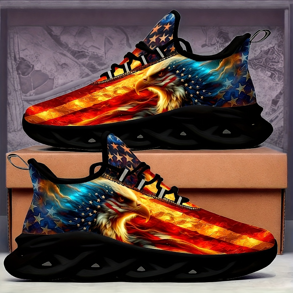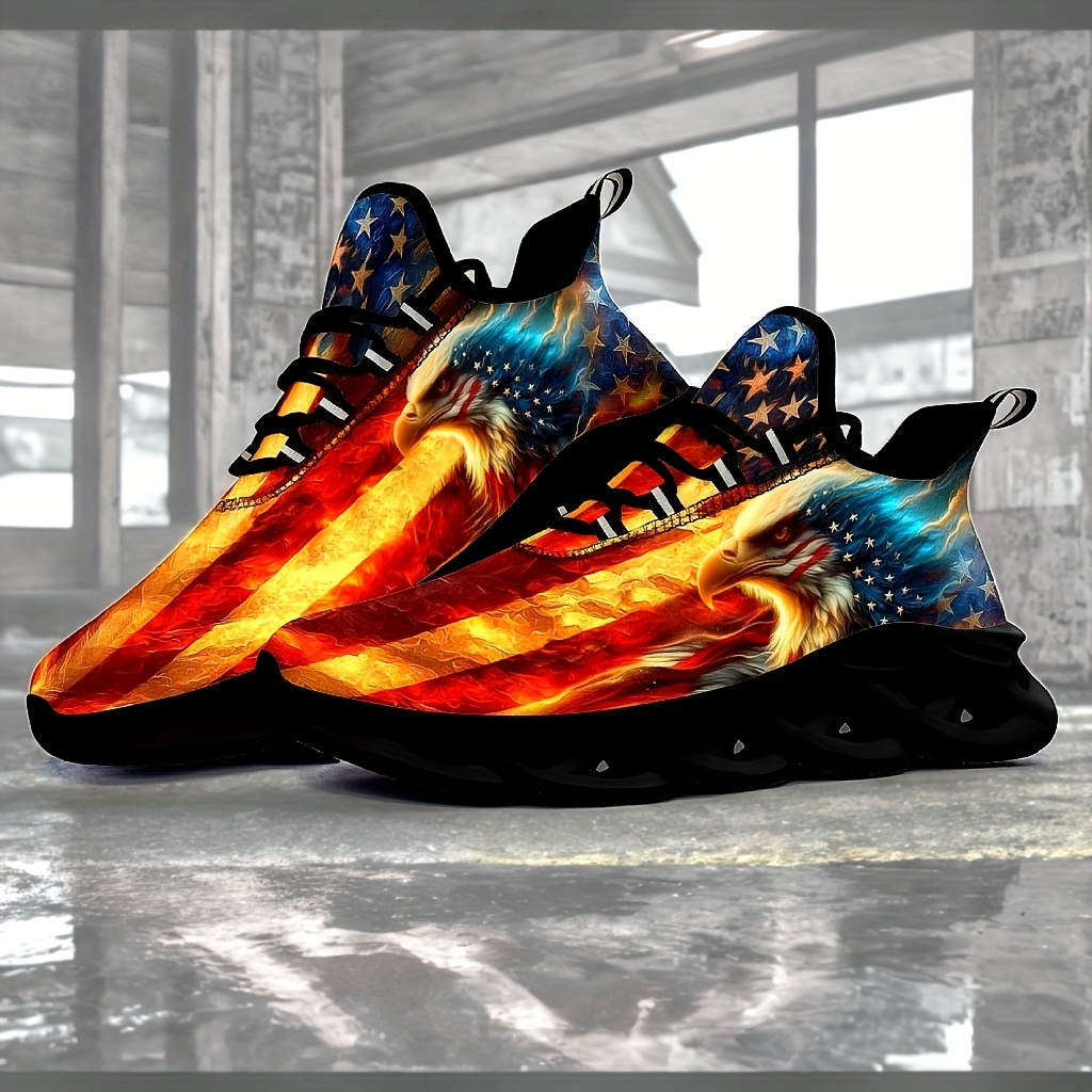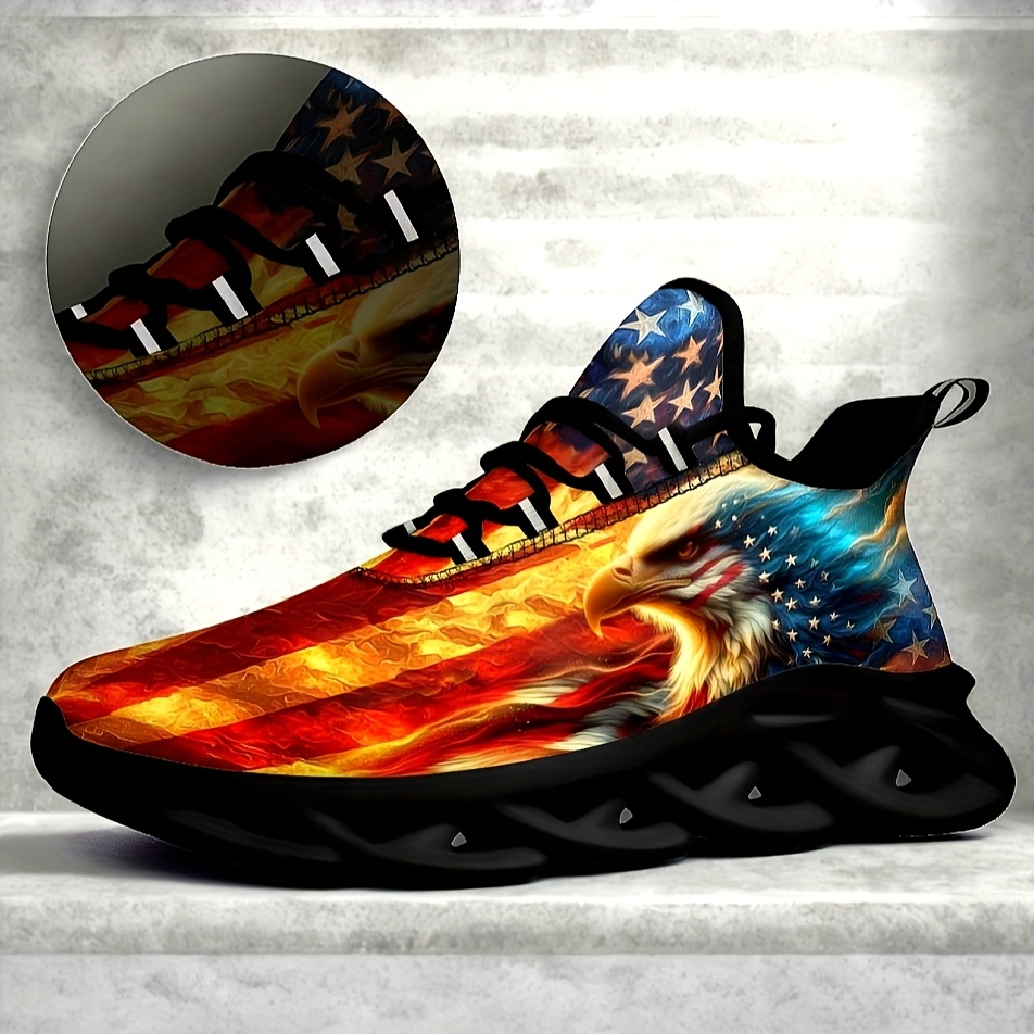 - Men’s Plus Size American Flag Eagle Sneakers – Patriotic Design, Comfortable Casual Sneakers with Blade Sole for Outdoor & Training, Lace-Up Closure, Low-Top Upper, MD Material, All-Season Wear