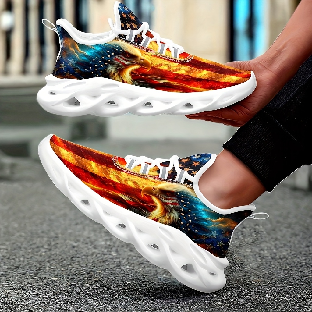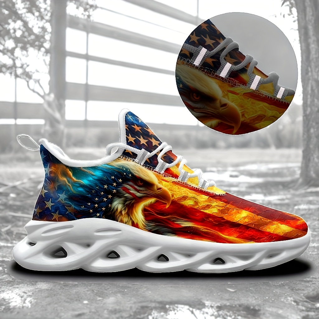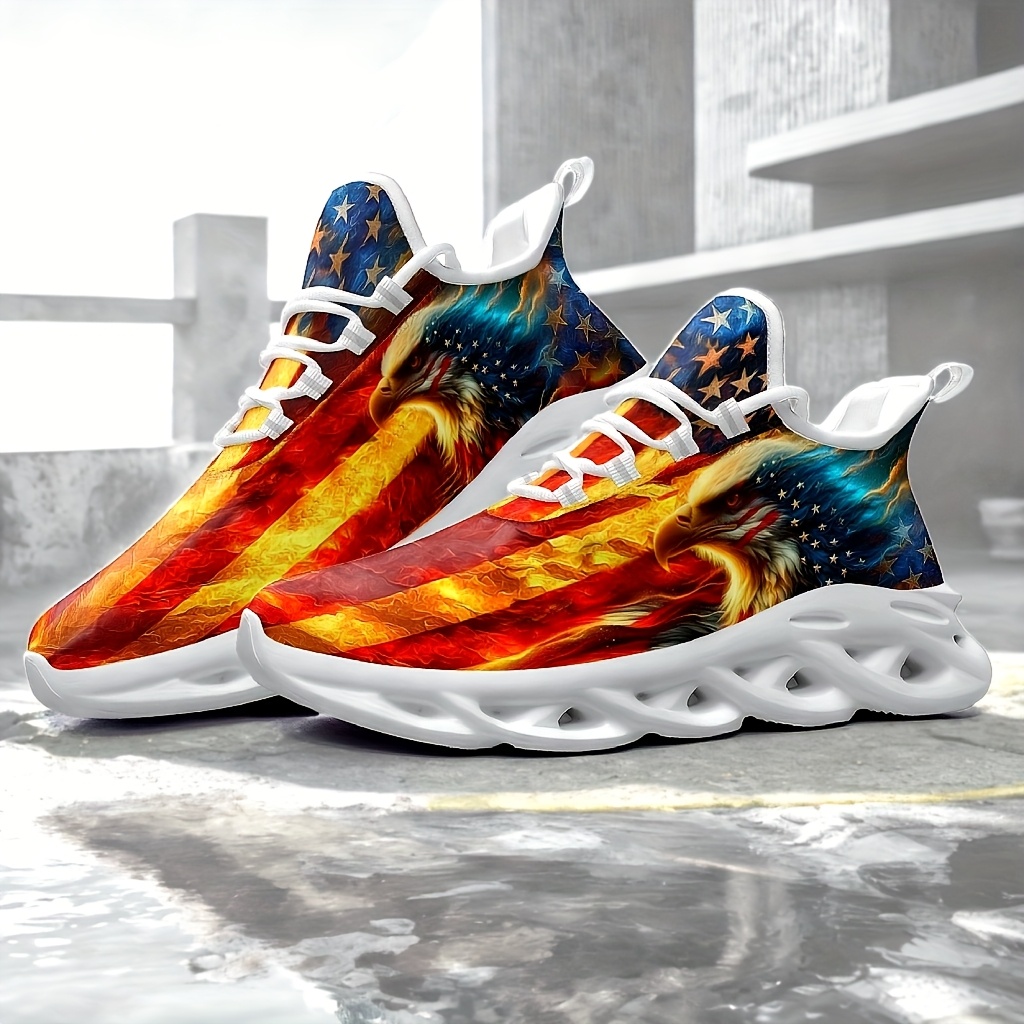 - Men’s Plus Size American Flag Eagle Sneakers – Patriotic Design, Comfortable Casual Sneakers with Blade Sole for Outdoor & Training, Lace-Up Closure, Low-Top Upper, MD Material, All-Season Wear
