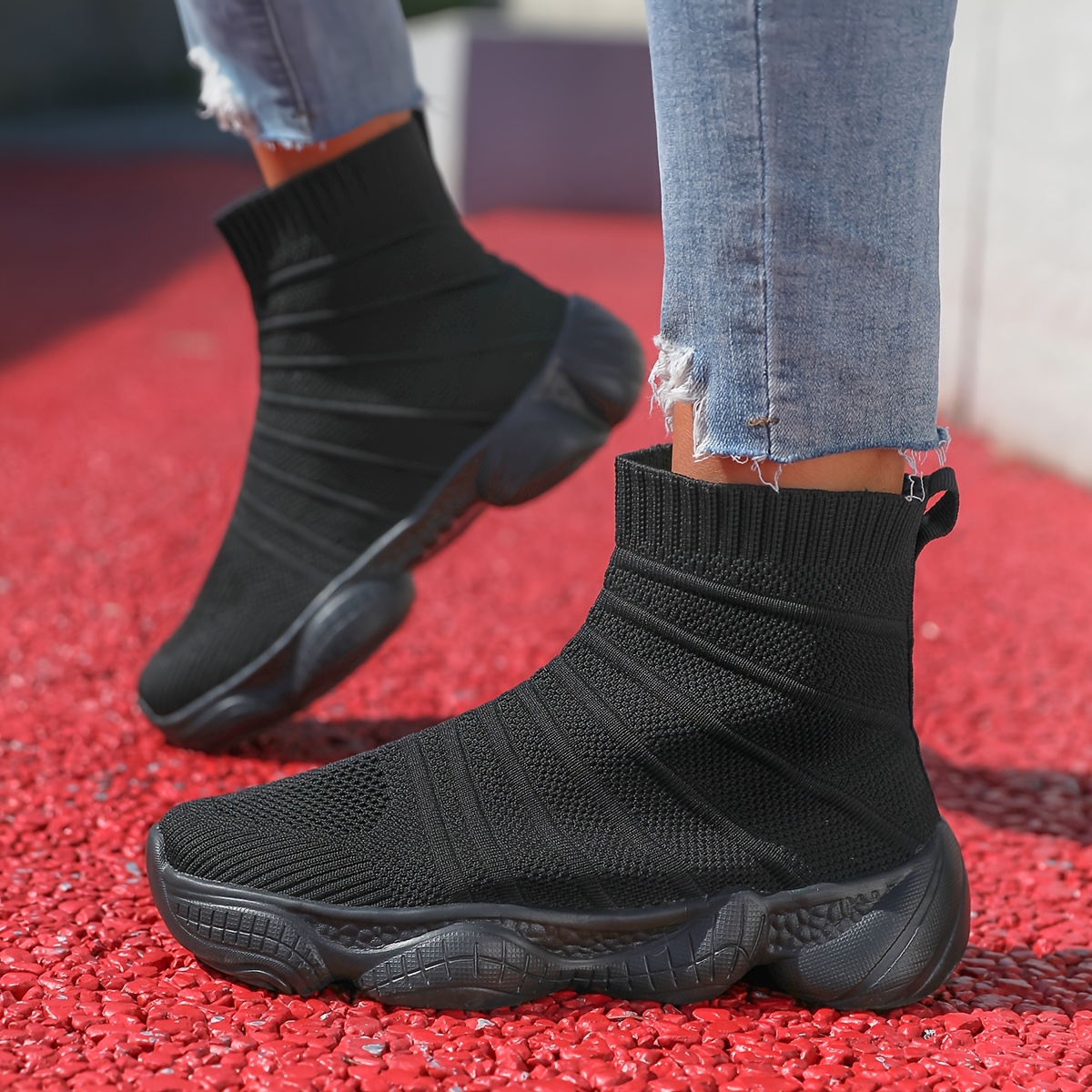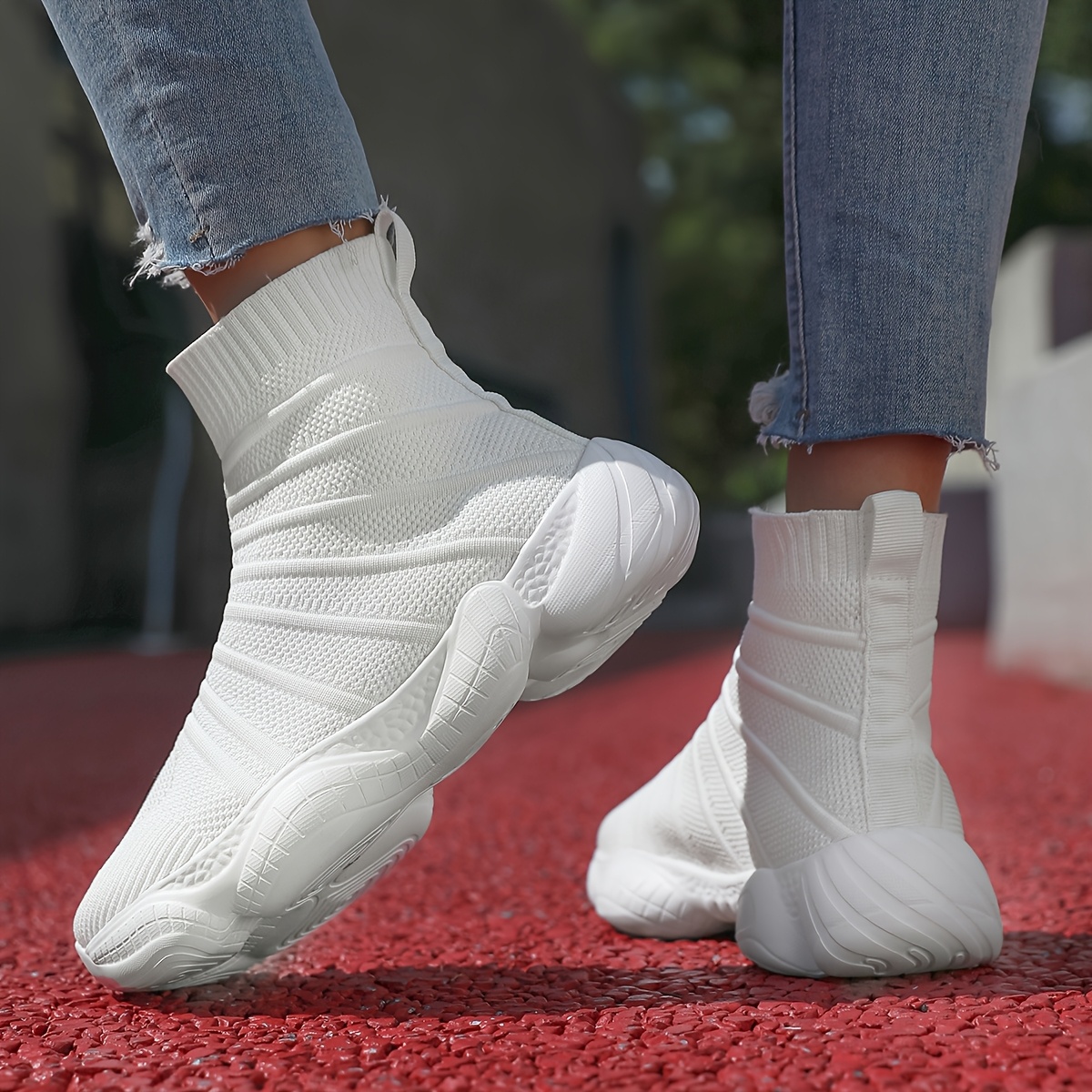 Mr.Modars Women’S Slip-On Platform Mid-Calf Boots – Breathable Fabric Upper, Round Toe & Flat Sole, All-Season Casual Sneakers with EVA Cushioning, Light Blueu002FWhite Design, Comfortable Walking Shoes, Trendy Midboot Style, Flexible Footwear