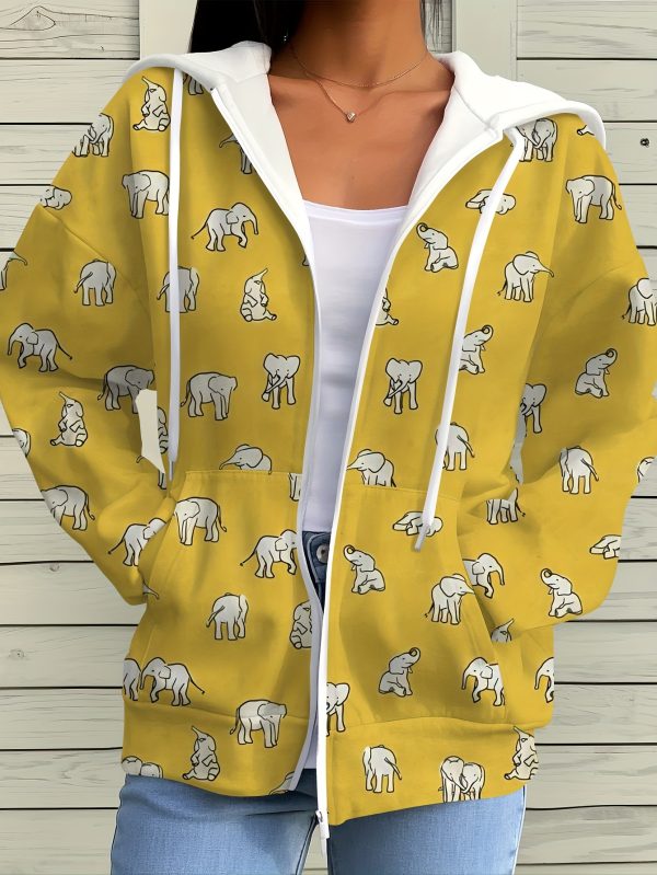 Be the first to review “‘s Pink & Grey Elephant Print Hooded Jacket Coat with White Zipper – Full-Zip Front Closure Winter Warm Casual Outerwear, Cute Pink Elephant Pattern Blazer for Mature Ladies, Machine Washable Fall Winter Coat” Cancel reply