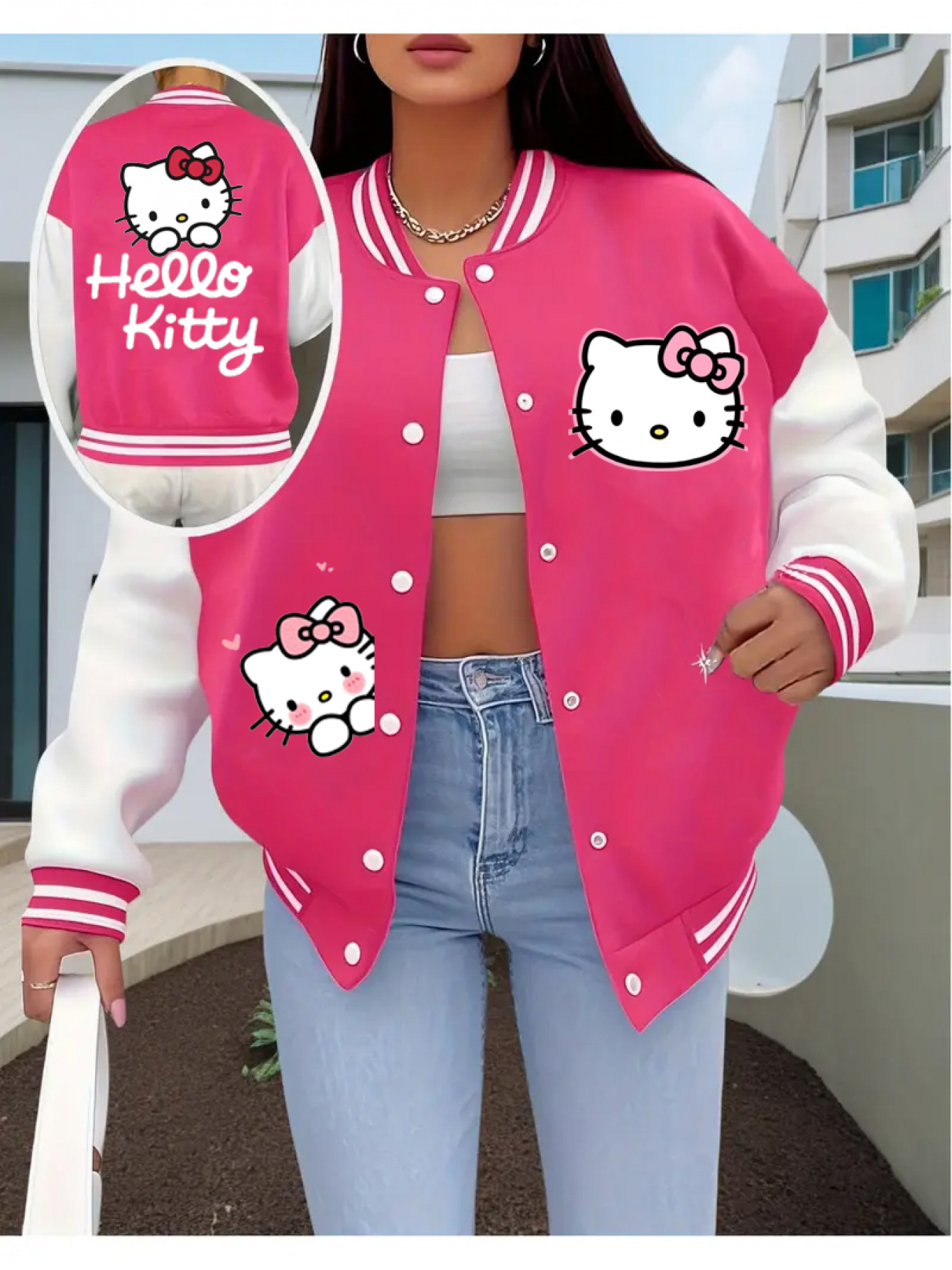 Sanrio for hello kitty Women’S Anime Jacket – Pink & White Colorblock Baseball Coat with Heart & Bow Cutouts, Cute Casual Outerwear for Themed Events, Fallu002FWinter Layering, Kawaii Fashion with Asymmetrical Hem & Belt Detail, Comfortable Layering Piece for Cosplay & Casual Attire, Fall Outfit For Women, Women Coat And Jacket, Women Fall Jacket, Women Zip Up Jacket, Halloween Costume For Women, Jacket For Women Winter, Jacket For Women Fall, Winter Outfit For Women, Light Jacket For