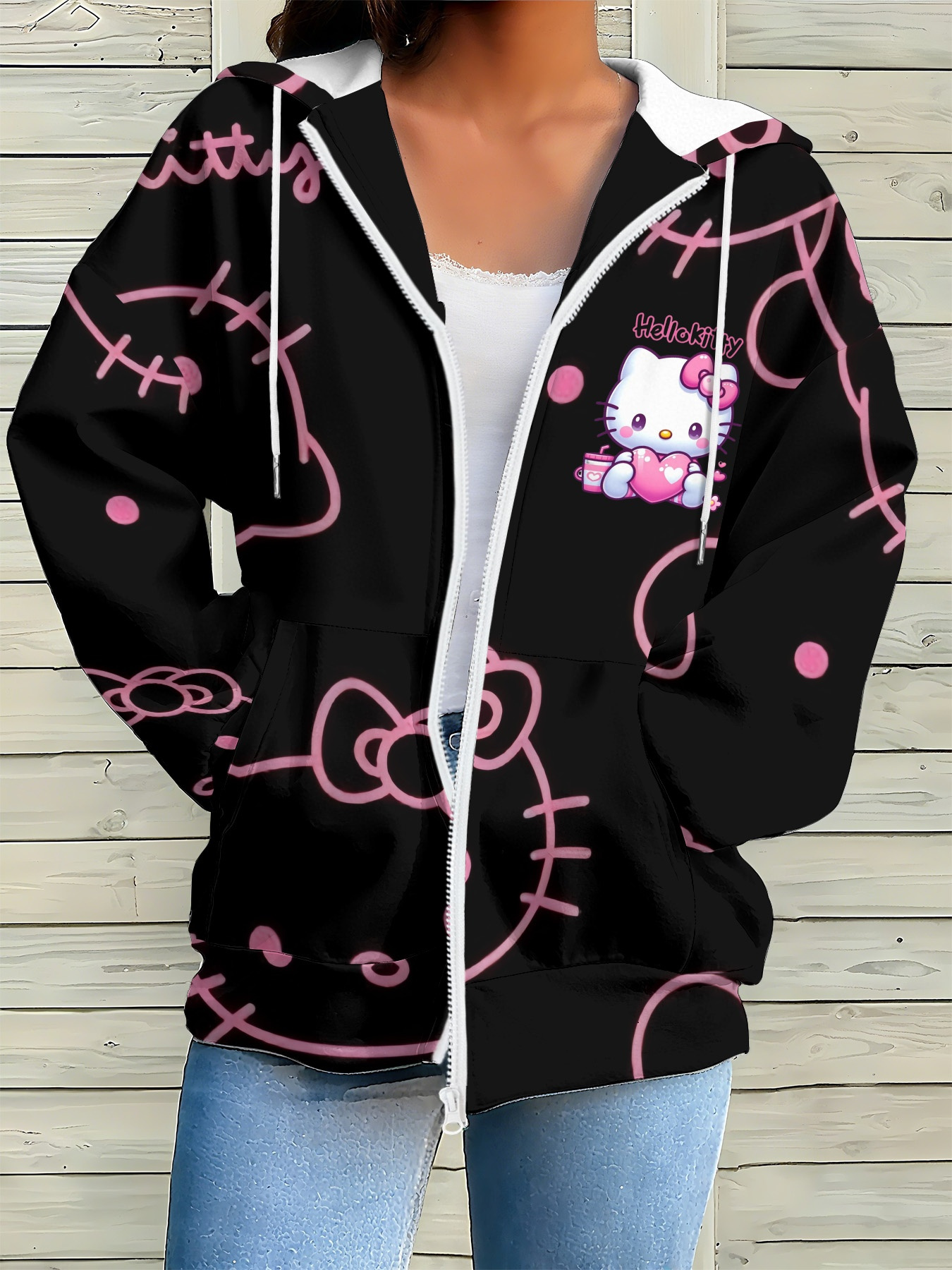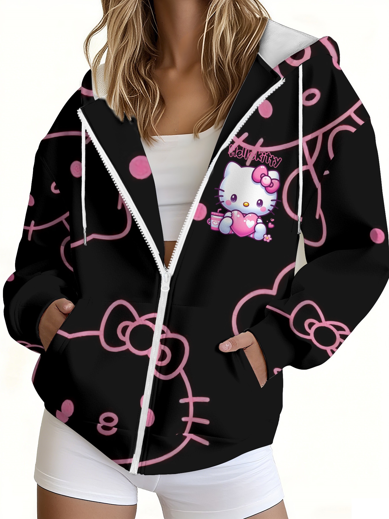 - Sanrio Hello Kitty Women’s Hoodie – Full-Zip Sweatshirt with Front Pocket, Cute Sanrio Character Outfit for Everyday & Party Wear (Machine Washable) – Perfect Gift for Hello Kitty Fans, Leisure Clothing, Kawaii Fashion, Quality Stitching, Zipup Jacket