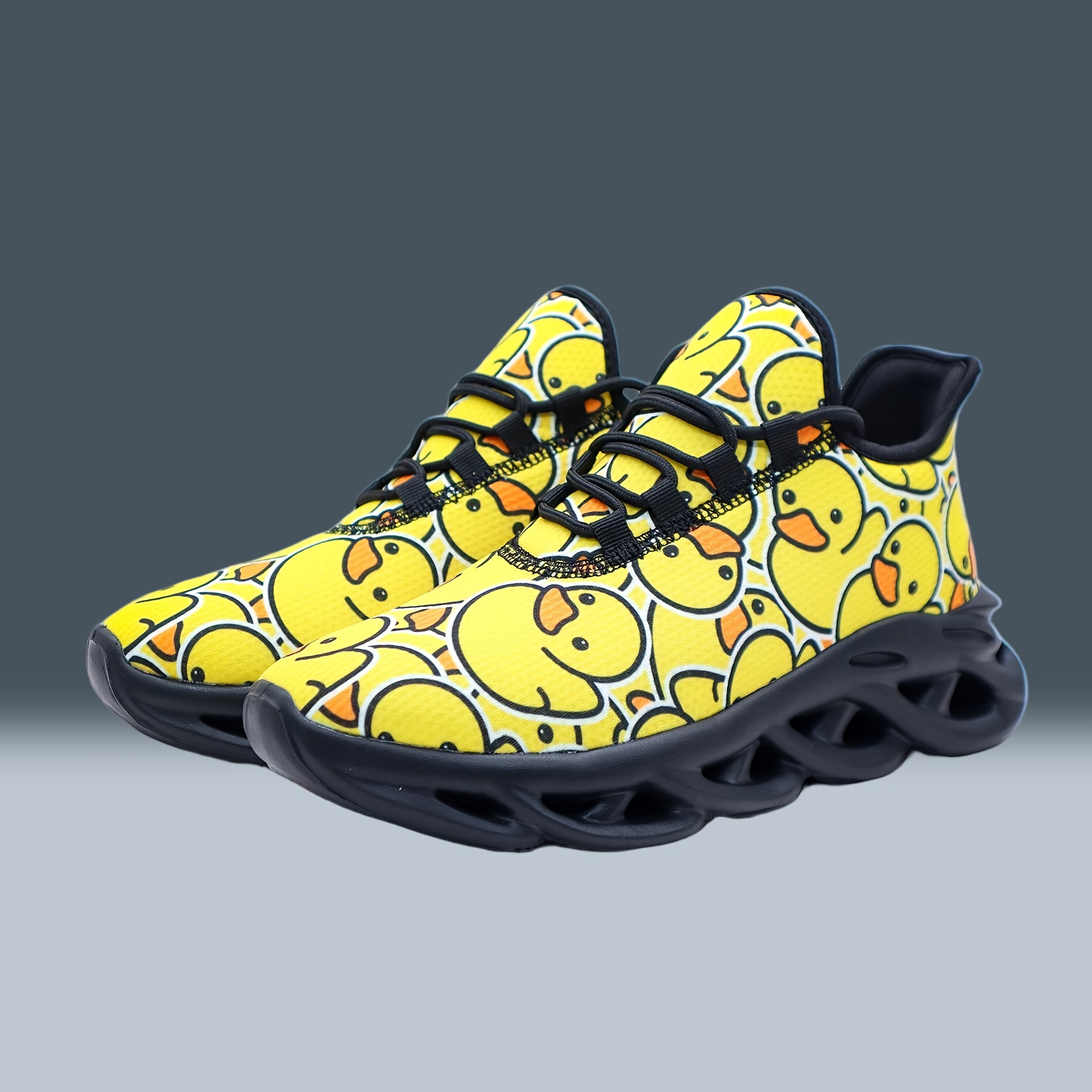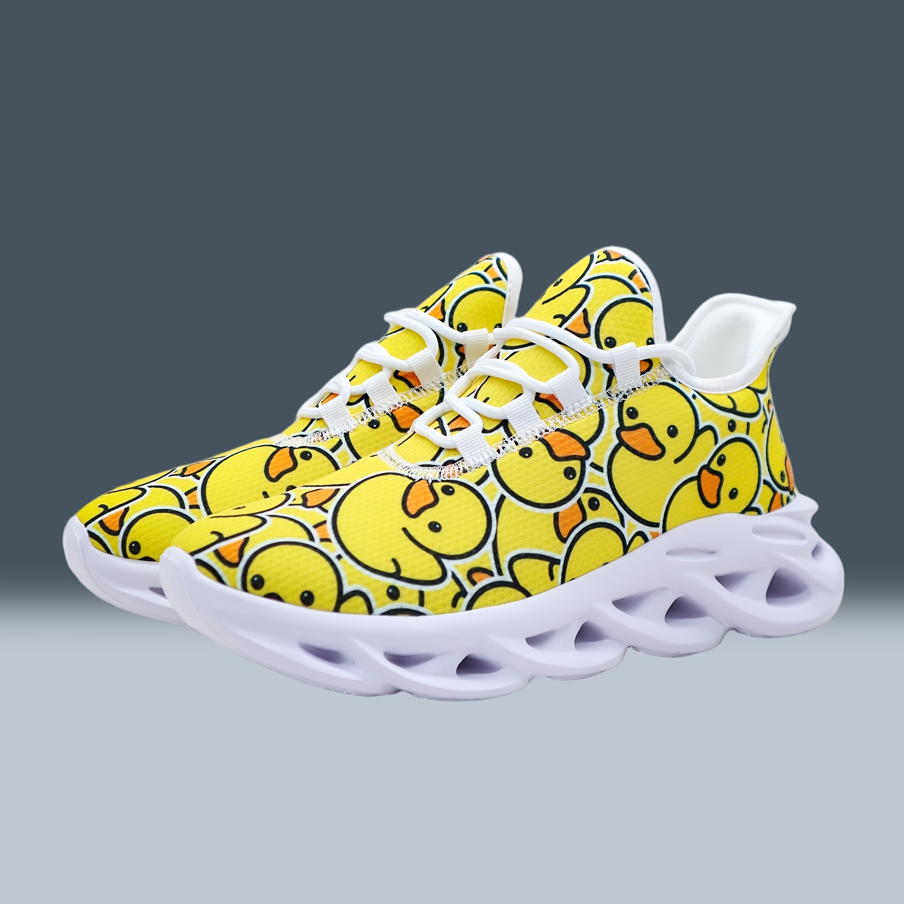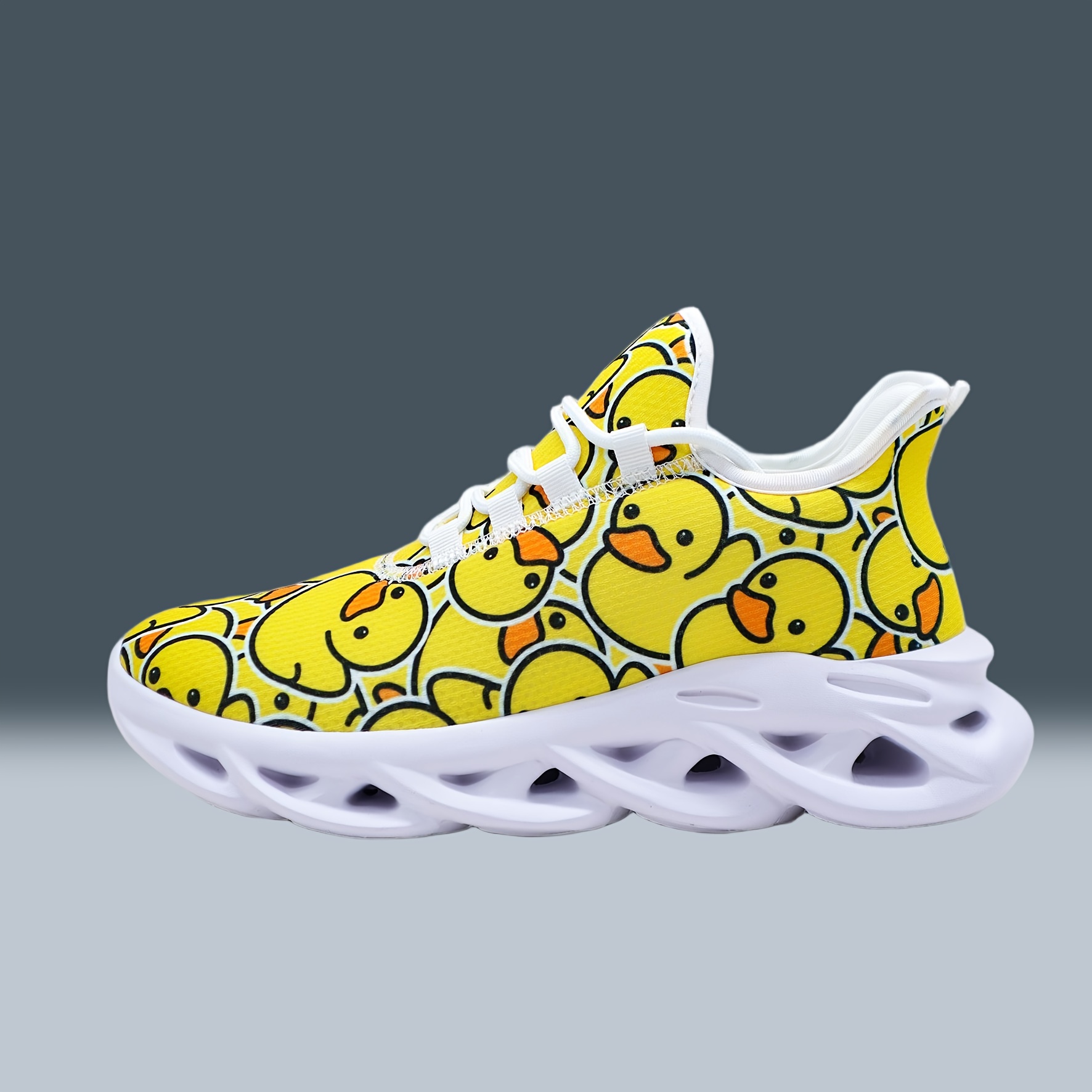Unisex Bright Yellow Rubber Duck Print Casual Sneakers – Low-Top Breathable Fabric & MD Sole for All-Season Outdoor Running, Street Style Comfortable Lace-Up Shoes with Fashionable Versatility, Allseason Footwear, Playful Design, Durable Footwear
