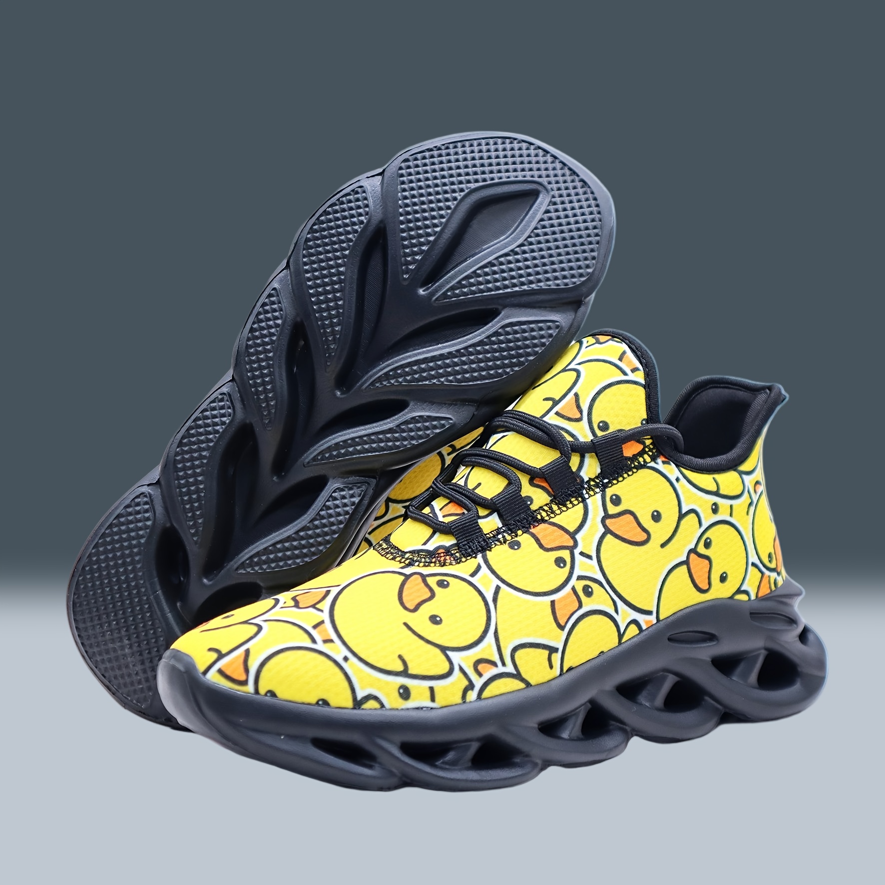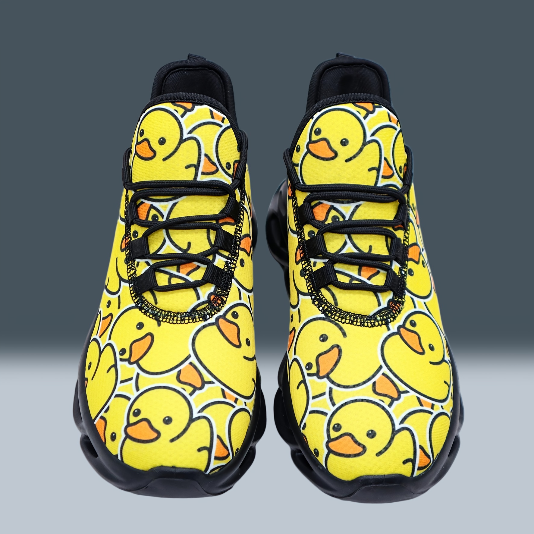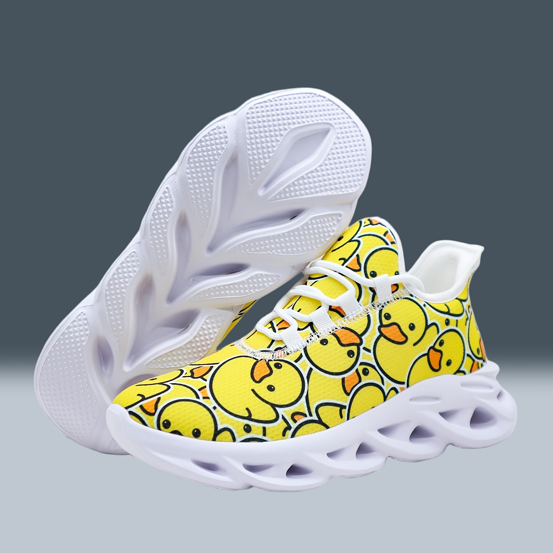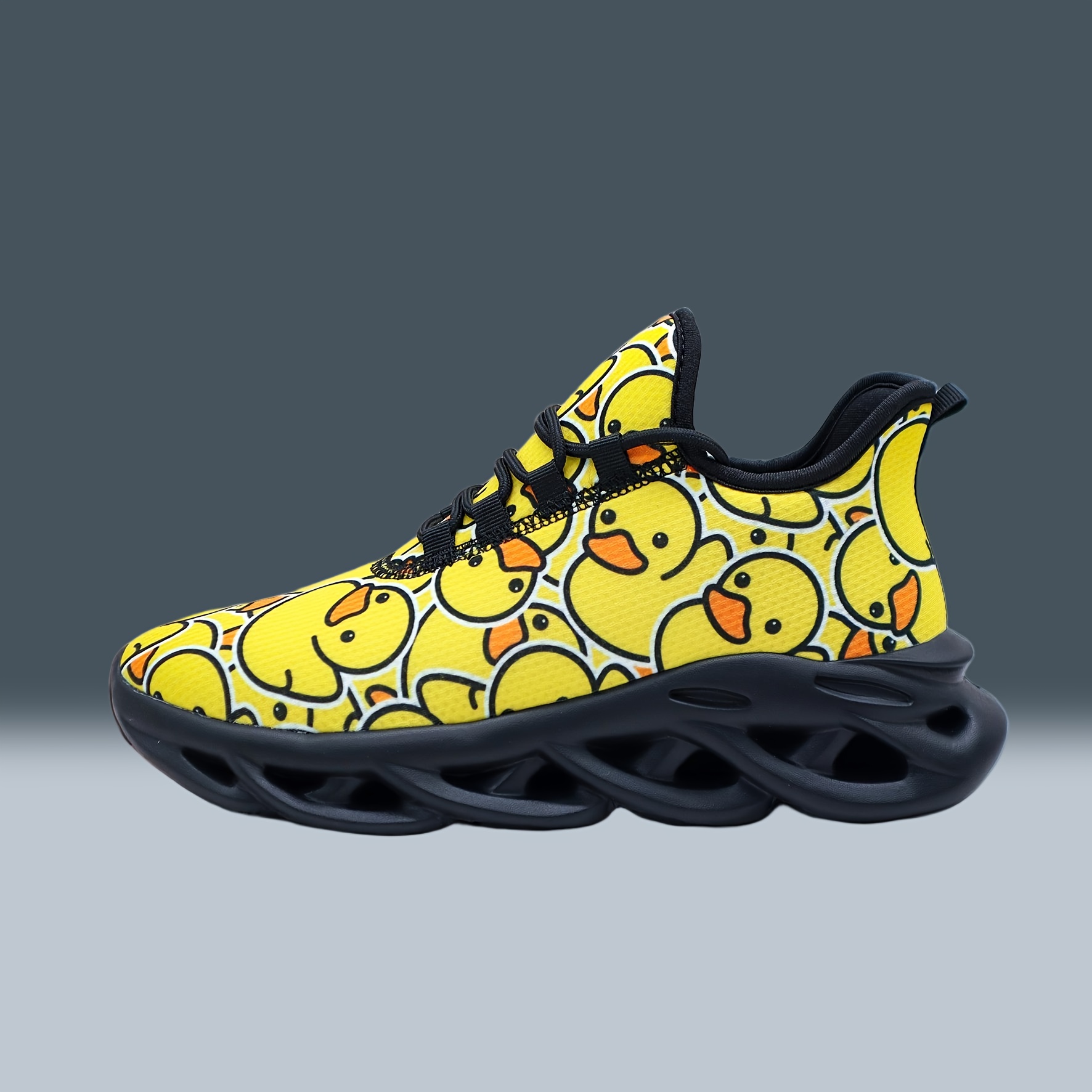 Unisex Bright Yellow Rubber Duck Print Casual Sneakers – Low-Top Breathable Fabric & MD Sole for All-Season Outdoor Running, Street Style Comfortable Lace-Up Shoes with Fashionable Versatility, Allseason Footwear, Playful Design, Durable Footwear