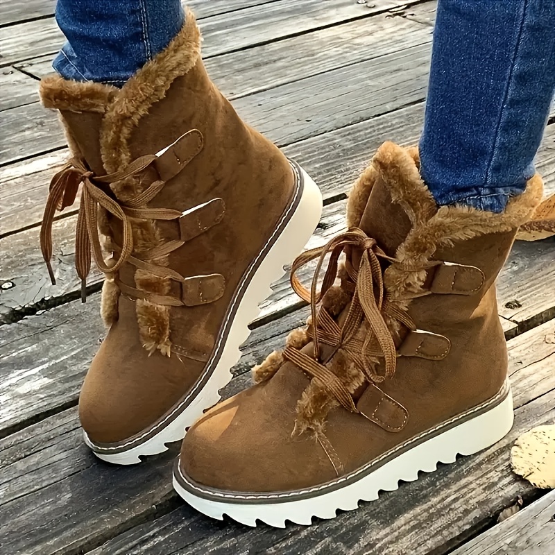 - Women’s Casual All – Match, Stylish And Warm Snow Boots. Women’s Thickened, – Lined, Laced Mid – Calf Boots, Classic Womens Boots, Boots for Women, Boots for Women