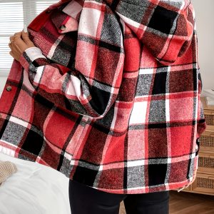 Be the first to review “Women’S Casual Plaid Hooded Jacket with Fleece Lining, 100% Polyester Woven Shirt, Button Detail, All-Season Warmth” Cancel reply