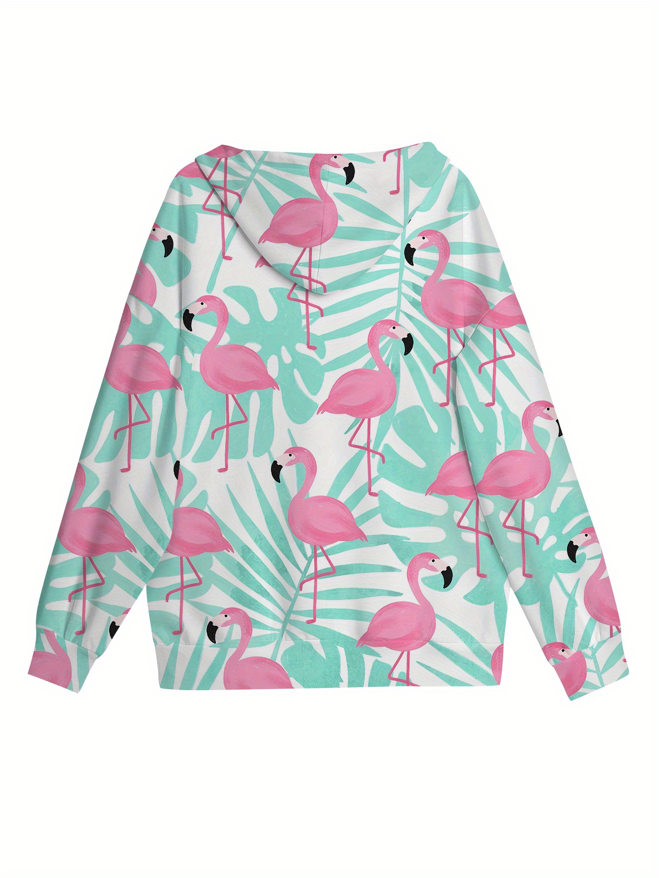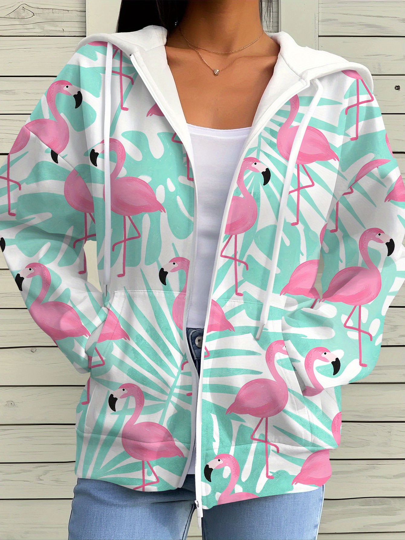 Women’s Pink Flamingo Print Jacket Coat – Full-Zip Hooded Winter Outerwear, Zipper Closure Front, Machine Washable Cold Weather Jacket for Vacation, Everyday & Special Occasions – Women’s Fashion Outerwear, Vacation Outfit, Playful Design, Quality Stitching, Stylish Hoodie, Casual Wear