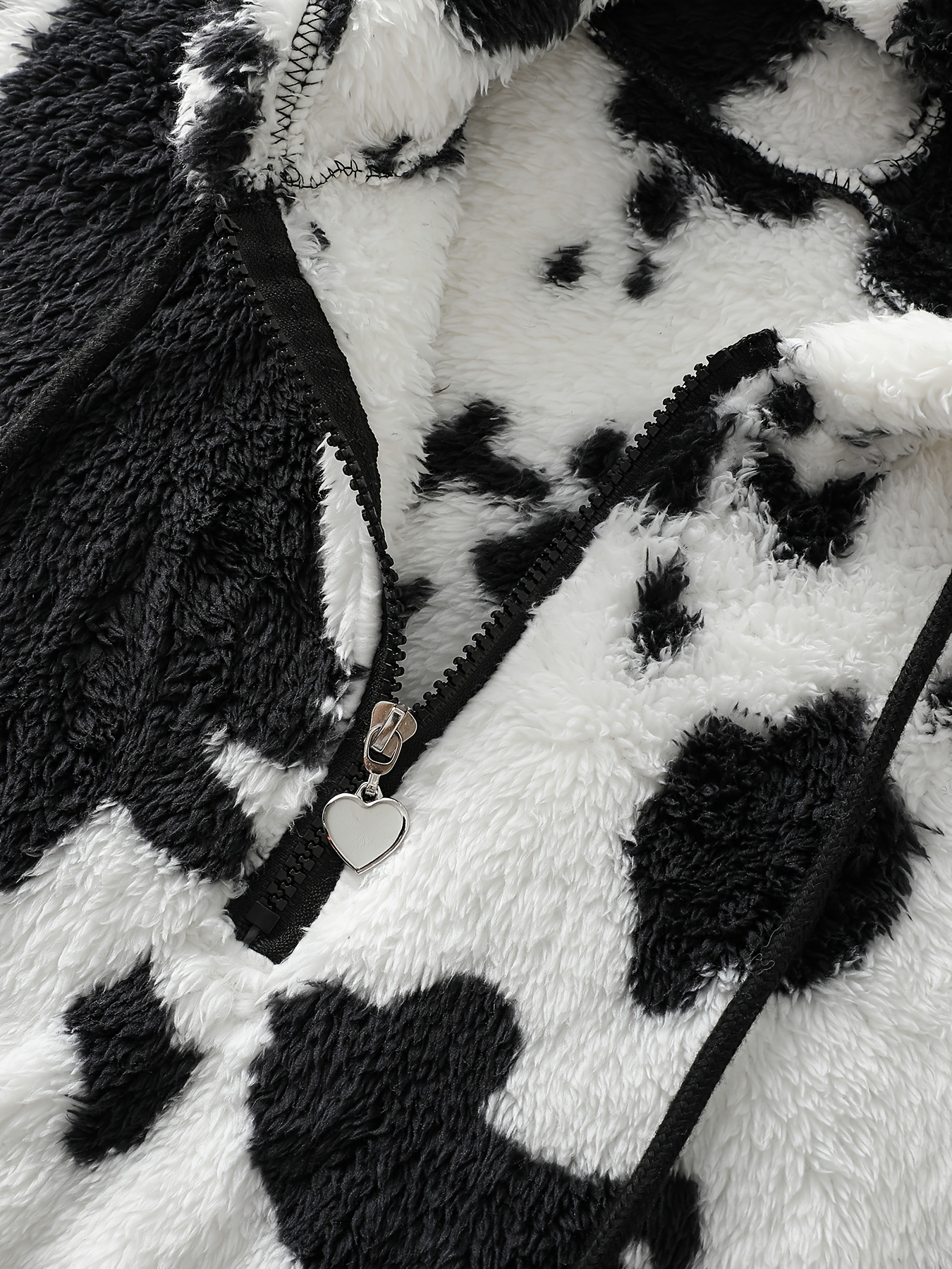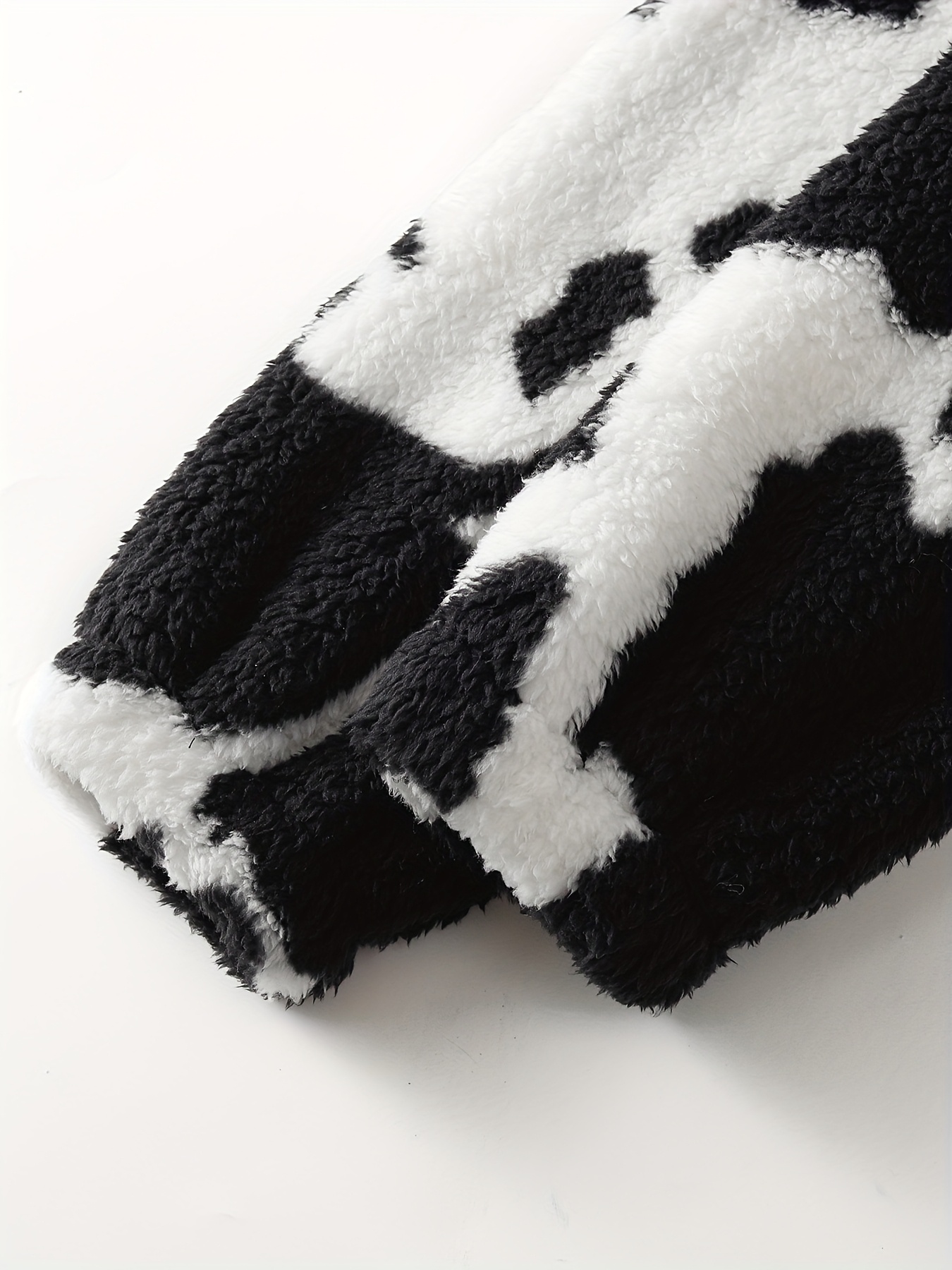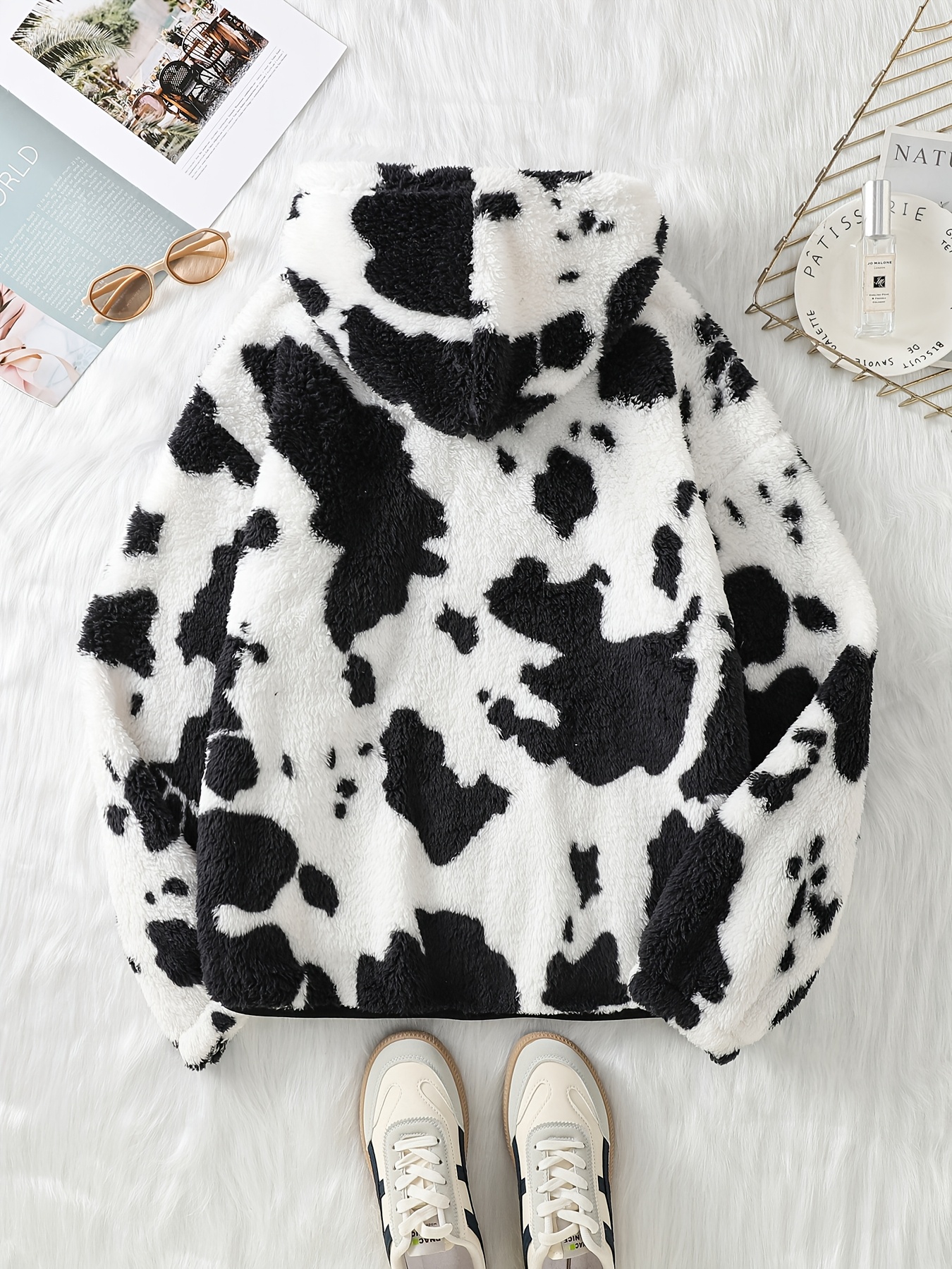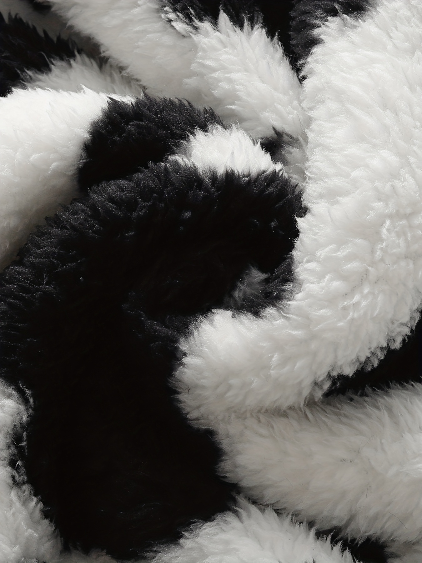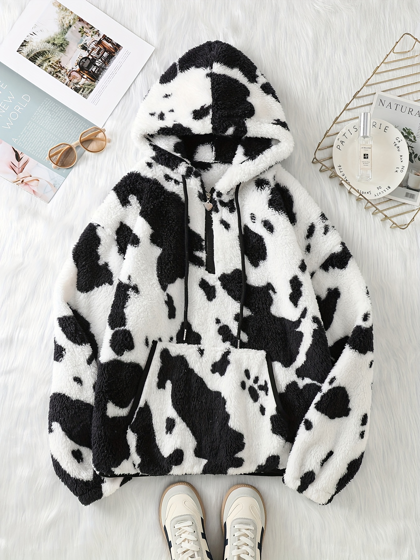 - Women’S Plush Teddy Hoodie with Geometric Pattern – Long Sleeve, Zip-Up, Half-Zip, Cozy Fleece-Lined Jacket in Black & White, Perfect for Fallu002FWinter Casual Wear, Cozy Fall Wear | Geometric Pattern Hoodie | Soft Texture Hoodie