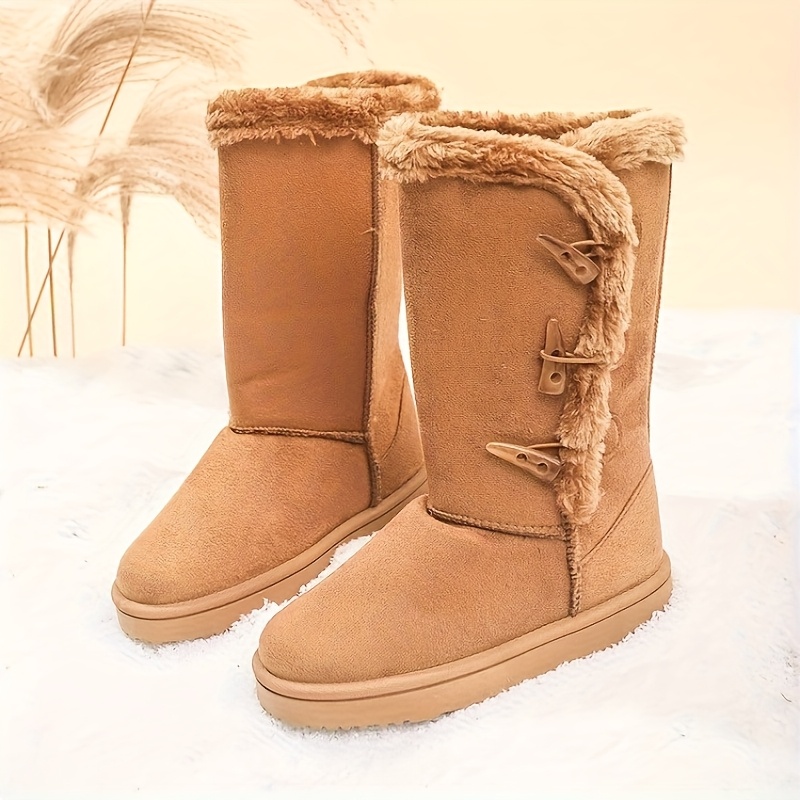 This product has multiple variants. The options may be chosen on the product pageWomen's Mid Calf BootsWomen’S Cozy Slip-On Mid-Calf Boots with Thick Platform Sole, Round Toe & Knitted Cuff – Soft Fabric Upper, Faux Cover Sole, Beige, Brown, Black – Perfect for Winter Outdoor & Party Wear, Winter Boots, Party Footwear, Knitted Texture, Comfortable Fit