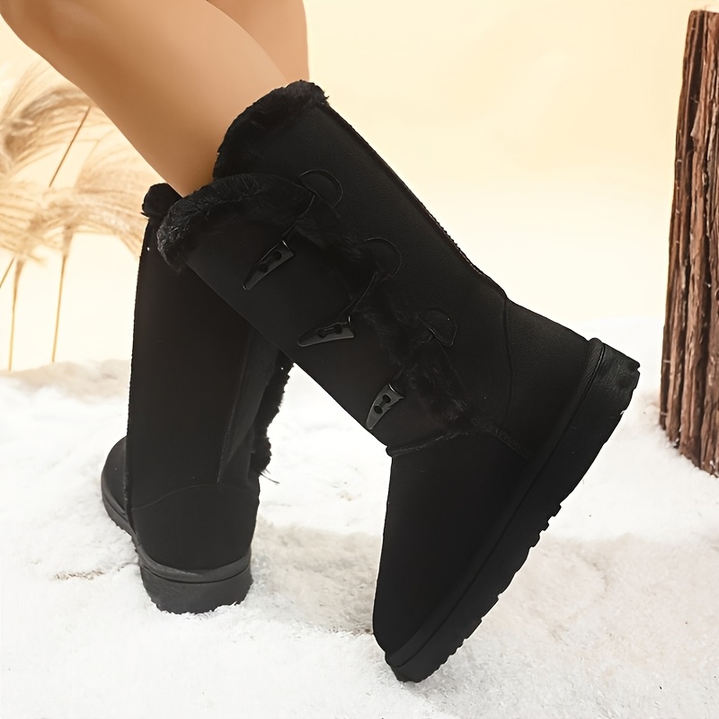 - Women’s Slip-On Mid-Calf Boots – Warm Lined, Thick Rubber Sole Anti-Slip, Flat Comfortable, Size 36-42 Black