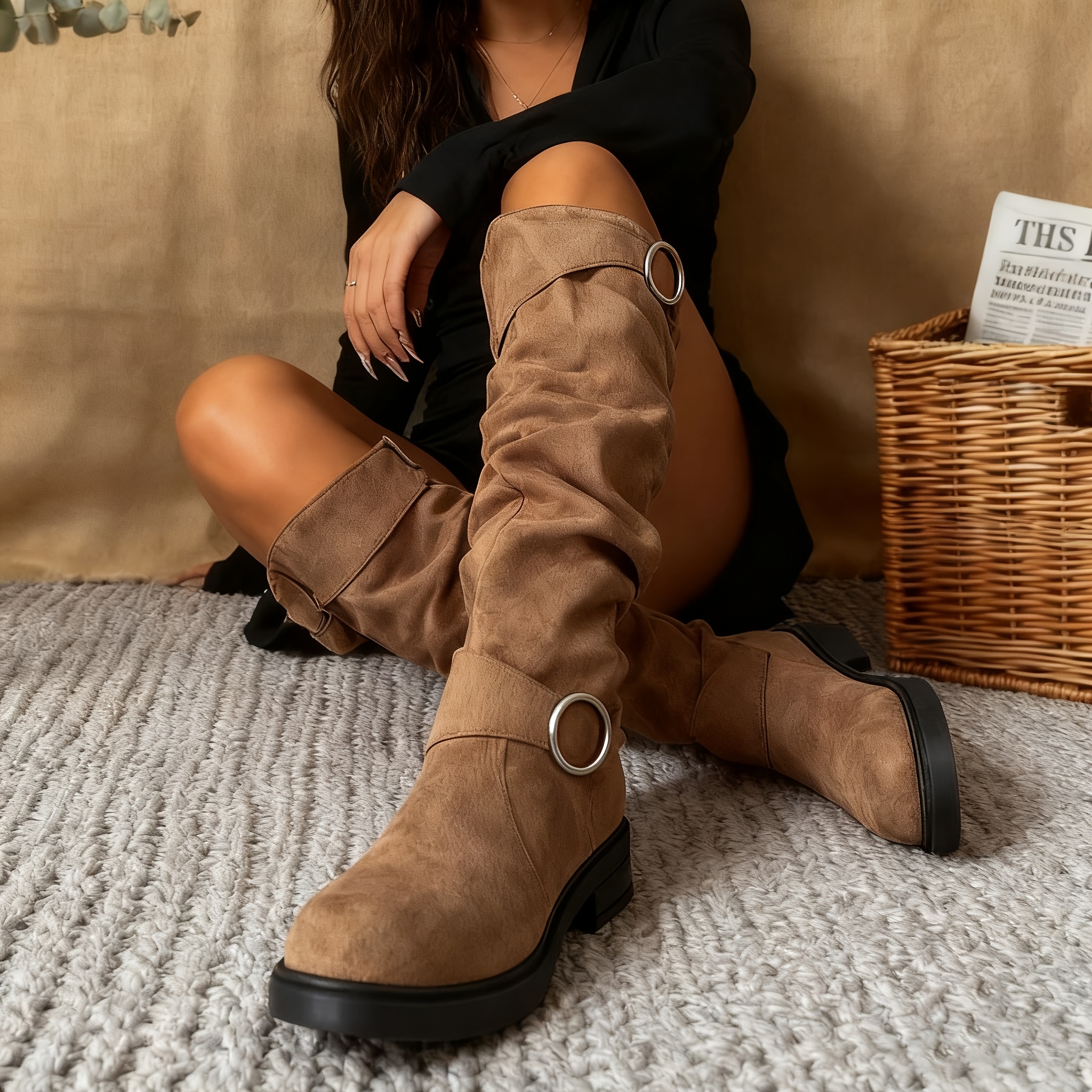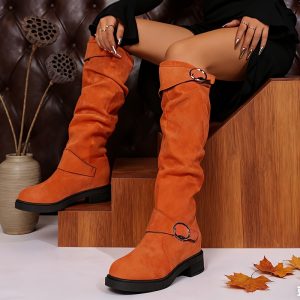 Women’S Slip-Resistant Thick-Soled Mid-Heel Boots – Pointed Toe Soft Fabric Upper with Cushioned Insole & Arch Support, Candy Colors (Brownu002FTan) – Versatile Outdoor, Halloween & Music Festival Boots – Comfortable Rubber Sole & Easy Onu002FOff Design for