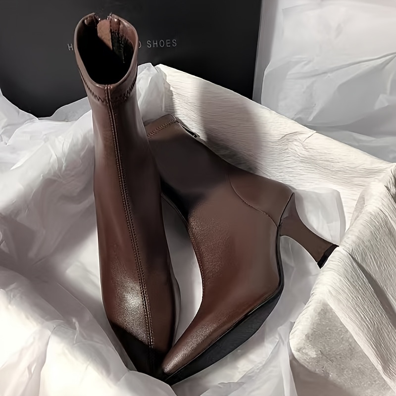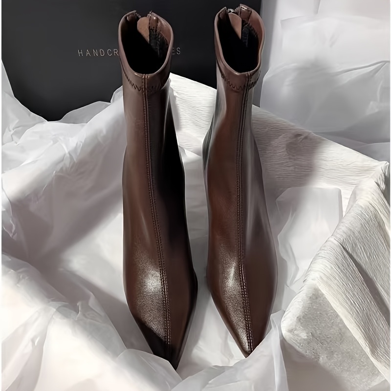 This product has multiple variants. The options may be chosen on the product pageWomen's Mid Calf BootsWomen’S Chunky Low Heel Pointed Toe Ankle Boots with Back Zipper Closure – Comfortable Round Lining & Cushioned Insole, Slip-Resistant Rubber Sole, Soft Fabric Upper (Brown) – Versatile for Daily Wear, Parties, Commuting – Easy Onu002FOff & Durable Desi