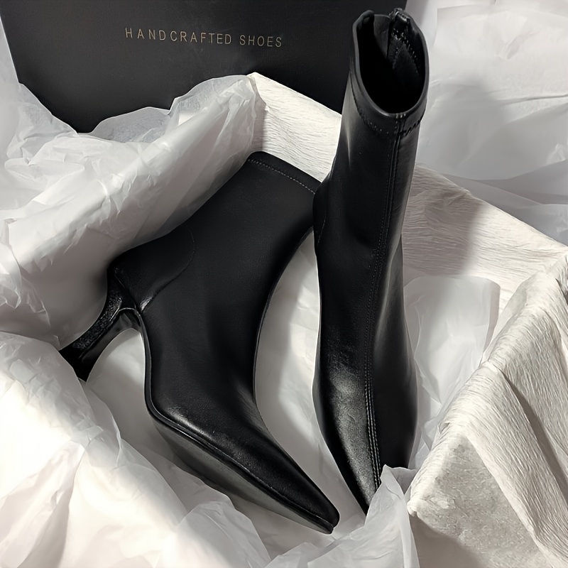 Women’S Stylish White Pointed-Toe Stiletto Heel Ankle Boots with Zipper Closure – Synthetic Cover, Fabric Lined, Sole, White Boot Knee High, White Knee High Boot, Elegant Woman Boot, White Woman Boot, Elegant Boot For Woman, Pointed Toe Bootie