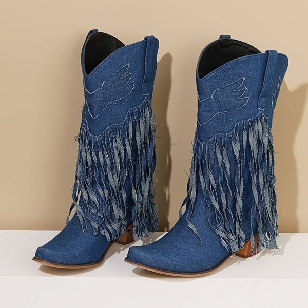 Women’s Western Cowboy Boots – Wide Calf Mid-Calf Pull-On Boots with Chunky block heel, Non-Slip Rubber outsole – Cowboy boots for Western dancing, country events, Everyday western style – Easy Slip-On Design, Cowboy Accessories, Western Dance Footwear, Denimlike Appearance, Durable Construction
