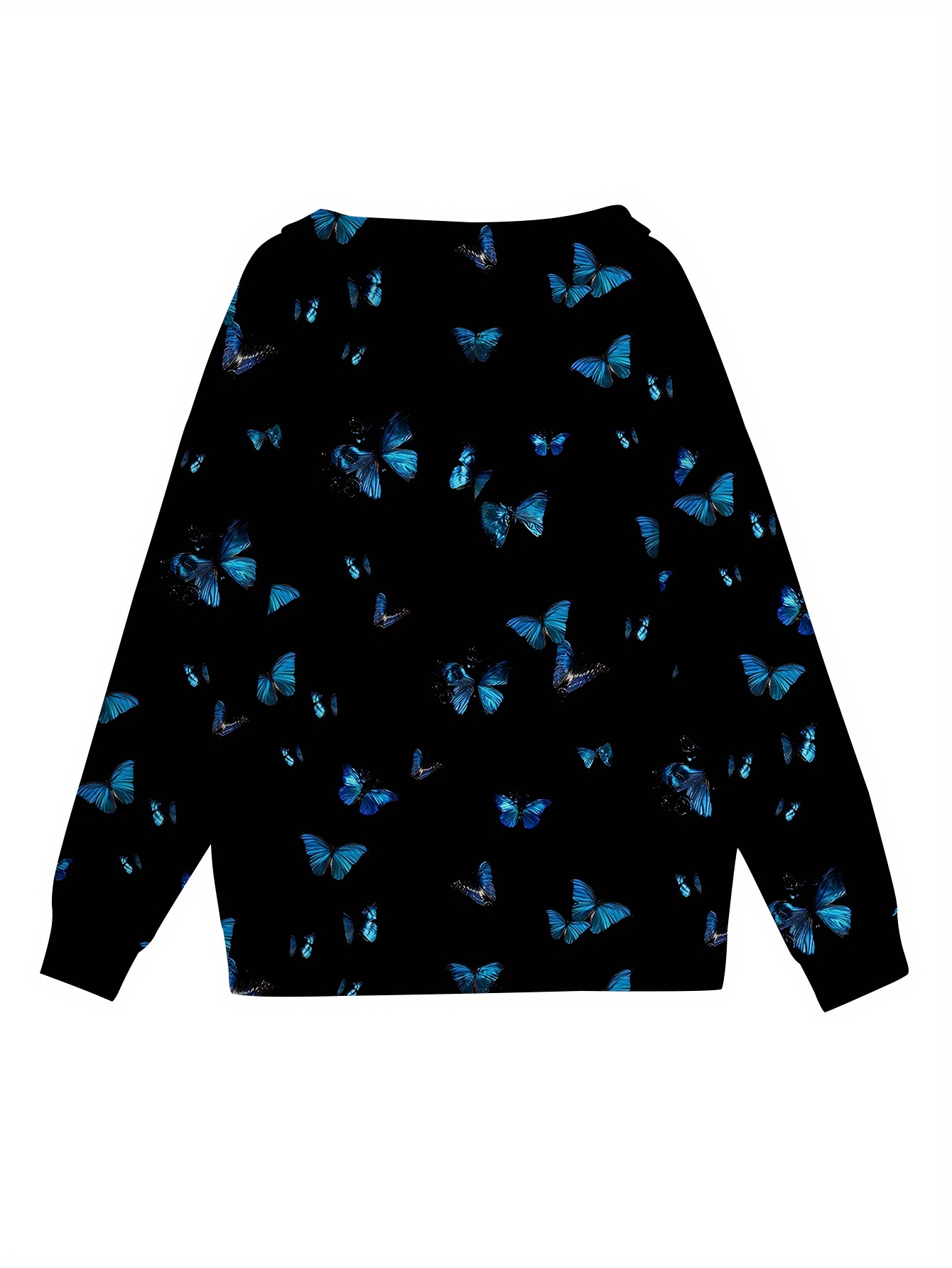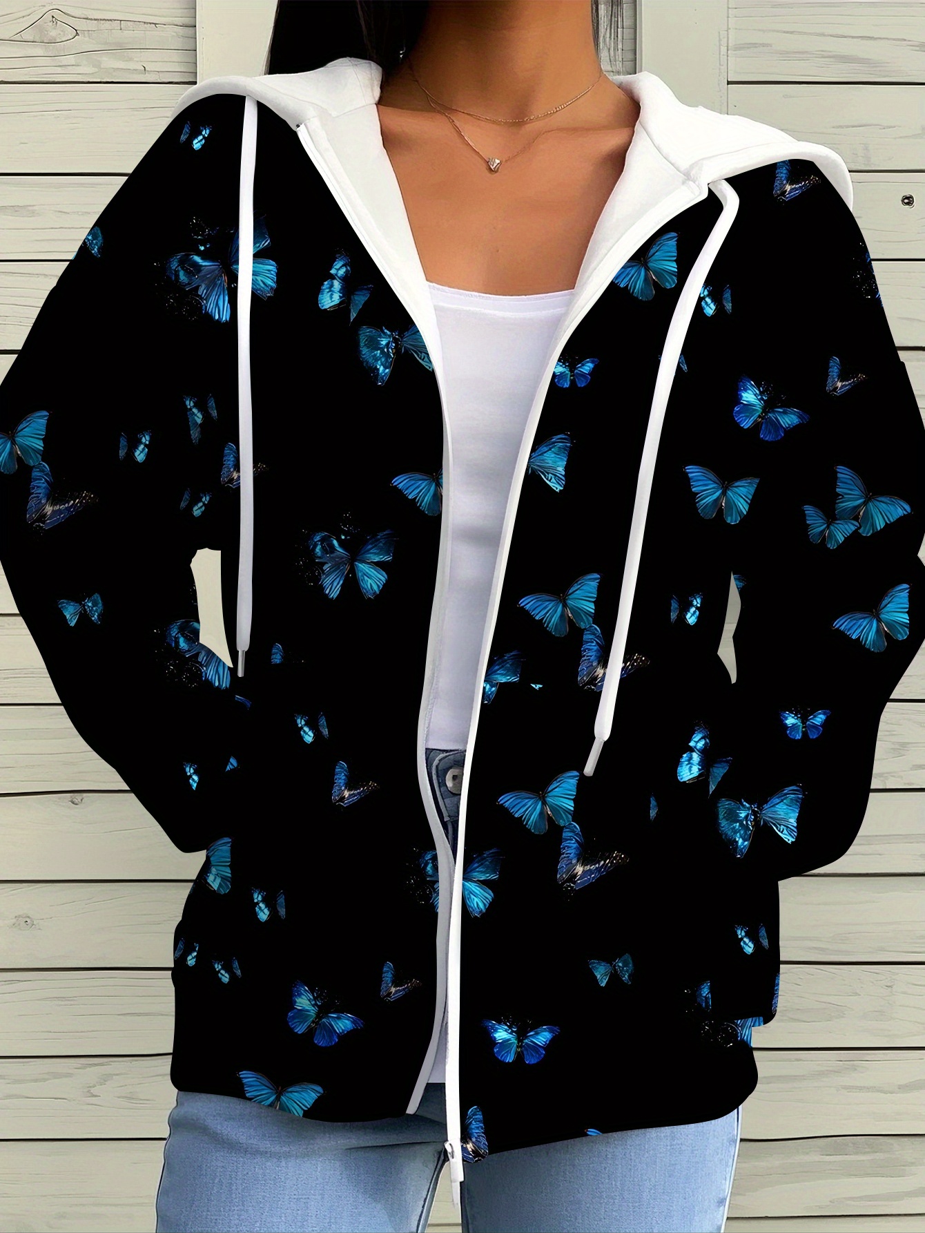 Women’S Zip-Up Hoodie Jacket – Elegant Blue Butterfly Print Coat, Long Sleeve Outerwear for Fallu002FWinter, Casual Chic Jacket for Everyday & Formal Events, Fall Fashion, Stylish Coat, Comfortable Fit, Zippered Coat, Winter Wardrobe, Fall Fashion Coat, Durable Fabric, Office Wear